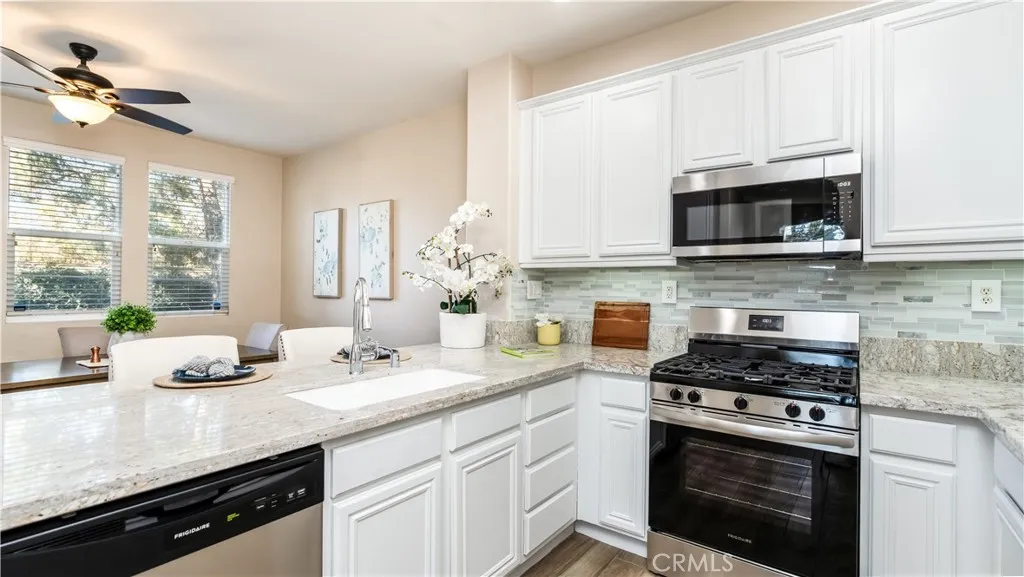 Located in one of Murrieta’s most sought-after neighborhoods, this beautifully updated home offers both comfort and convenience. With quick access to the 15 and 215 freeways, commuting is effortless. The home has just been refreshed with brand-new flooring, newly painted cabinets in the kitchen and bathrooms, sleek quartz countertops in the kitchen, and new stainless steel appliances, creating a bright, modern space ideal for everyday living and entertaining.