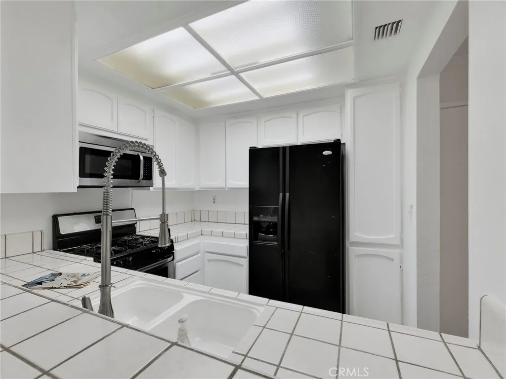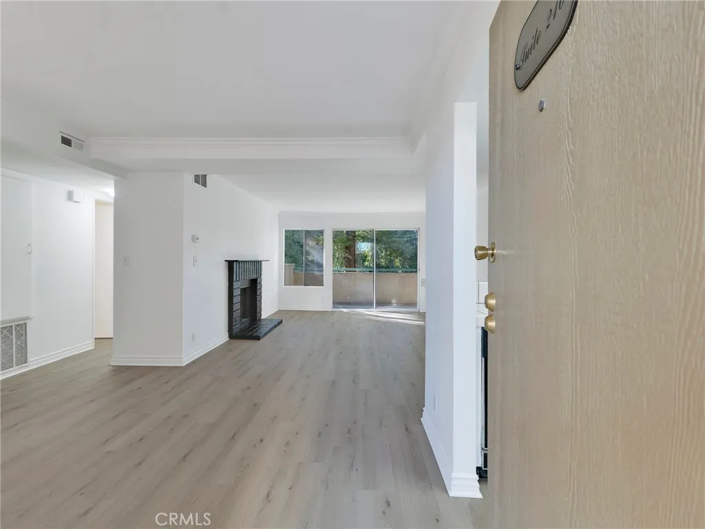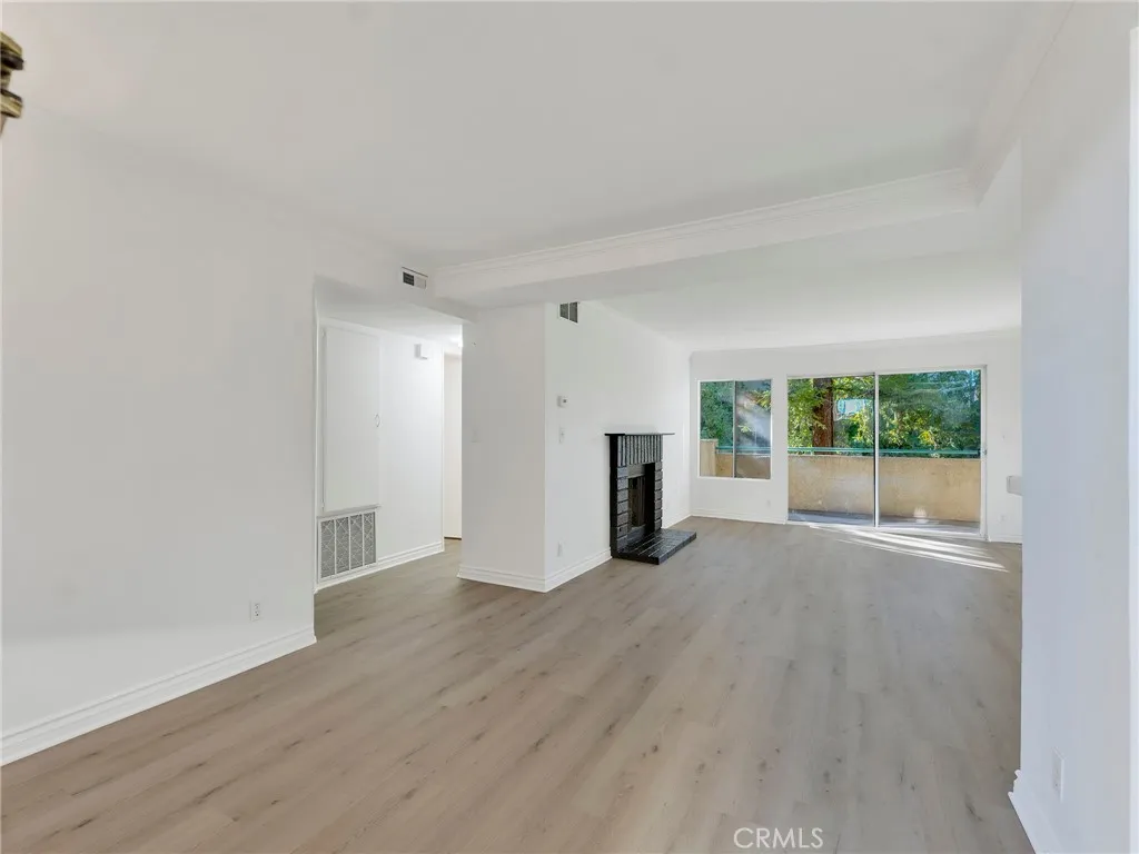 The spacious living area with a cozy fireplace flows seamlessly to a private balcony overlooking the sparkling pool: perfect for your morning coffee or unwinding in the evening with refreshing Southern California breezes. The modern kitchen offers crisp white cabinetry and generous storage, making everyday living and entertaining effortless.