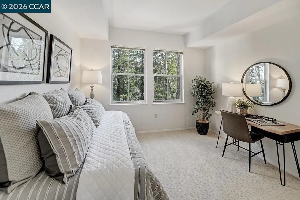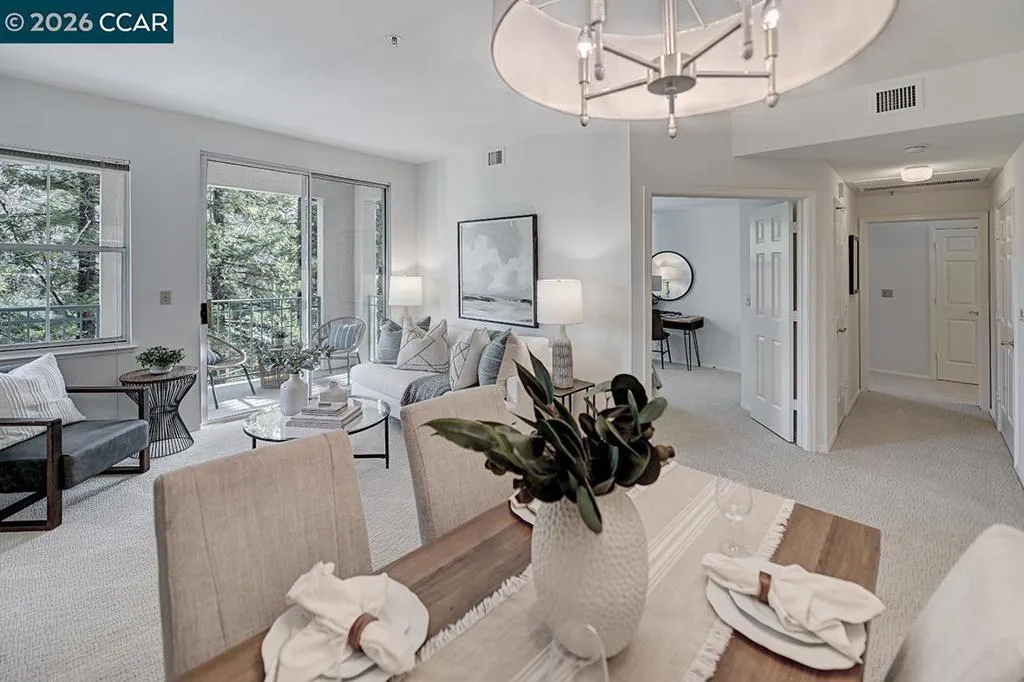 Very Special Home – 2 Bedroom & 2 FULL bathrooms. This is the one you’ve been waiting for. Perfectly located with easy access to everything, and just steps from the elevator but feels like a private retreat. Enjoy an exquisite tree lined view from every window and a spacious wraparound deck that embodies the ultimate California lifestyle – seamlessly blending open-concept indoor living with the serenity of the outdoors. The interior features thoughtfully updated throughout with new appliances, new carpet and freshly painted all the details that you’ll appreciate for years to come. A convenient stackable washer and dryer is located in the second bathroom, and additional private storage for all your worldly treasures. All these wonderful features and RARE garage parking.