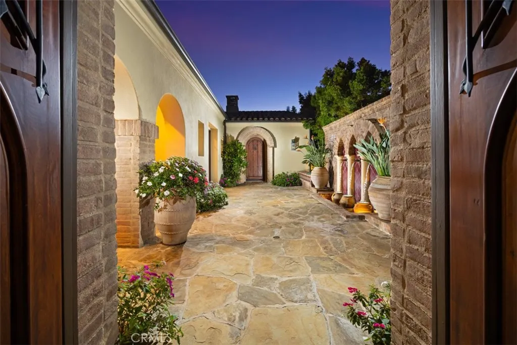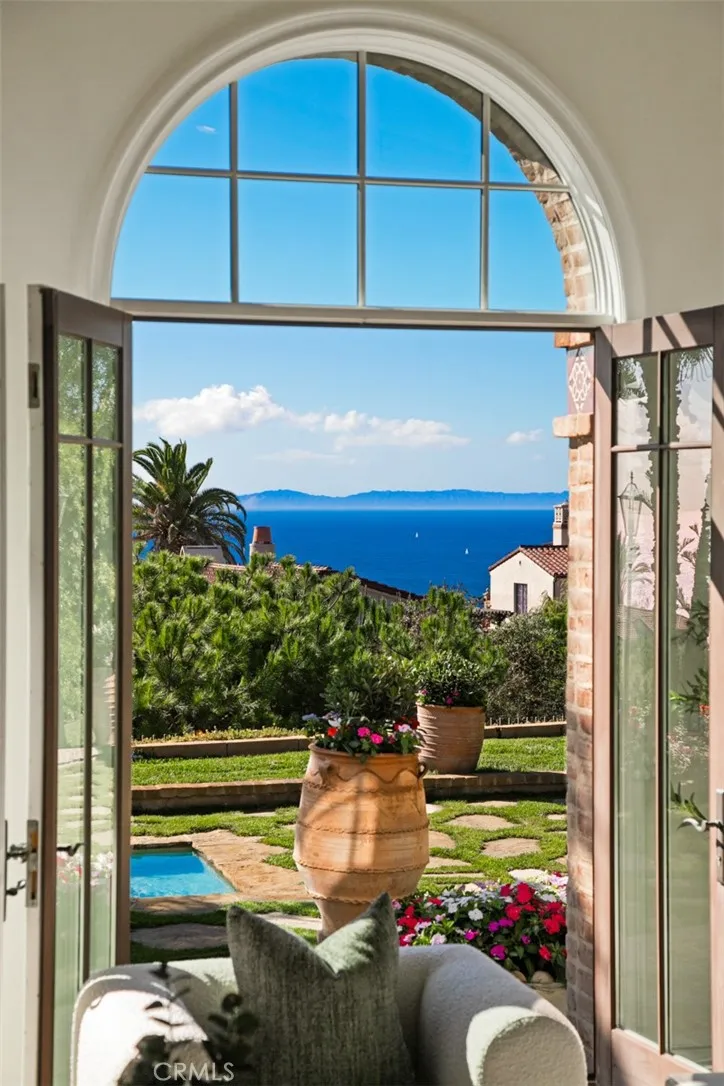 Set within the heart of Crystal Cove, 56 Archipelago is a rare coastal jewel: an exceptional single-level residence, a distinction held by fewer than five percent of homes in the community, with extraordinary ocean, sunset, and Catalina views. Once a former model for the Oceana tract, this home retains a sense of architectural intention and refinement, now recently refreshed to feel both elevated and effortlessly livable. Spanning approximately 3,631 square feet on an expansive 10,180-square-foot lot, the home contains 3 bedrooms and 4 bathrooms, an office, and a bonus room that could be used as a fourth bedroom. A stunning entry courtyard with tranquil fountain sets the tone; an intimate, sunlit arrival where ocean air drifts softly through brick and wood accents, offering a moment of calm before stepping inside. The single-level floor plan lives beautifully, allowing spaces to flow naturally from one to the next, ideal for both quiet daily living and relaxed entertaining. Large windows frame expansive ocean views, inviting natural light to dance across interiors finished in a thoughtful blend of wood, stone, and carpet flooring. The kitchen is warm and grounded, appointed with rich wood cabinetry, granite and stone countertops, and timeless materials that balance elegance with durability. Throughout the home, the finishes feel curated yet comfortable; refined without pretense. The home’s oversized lot enhances privacy and openness, while its central location offers rare walkability and access within Crystal Cove. Just moments away, the coastal trails and preserved beauty of Crystal Cove State Park meet the everyday conveniences and seaside charm of the Crystal Cove Shopping Center. Residents also enjoy the security of 24/7 guard-gated entry and exclusive access to the Crystal Cove Canyon Club; a private haven offering resort-style amenities, gathering spaces, and moments of leisure. Rare in form, generous in scale, and serene in setting, 56 Archipelago is a home defined by quiet luxury: where thoughtful design, coastal beauty, and an unmatched Crystal Cove lifestyle come together in perfect harmony.