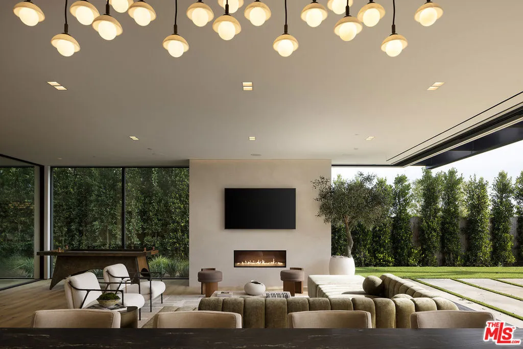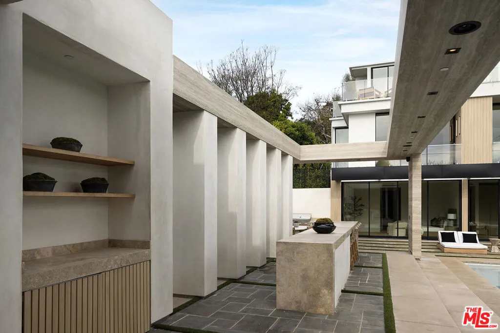 Presenting a masterful offering of exceptional design and architecture, newly completed in the coveted Upper Riviera of Pacific Palisades. Lush, carefully manicured trees and landscaping provide contrast to the home’s stone, metal, and glass facade, fusing the composition with its natural environment. An 11-foot-high pivot door welcomes guests into the light-filled foyer with a beautiful double-height space and wide-plank oak floors that can be found throughout the estate. At the center of the home there is a three-story floating staircase, flooded with natural light to illuminate each floor. Enjoy unique, premier amenities throughout, including two full wet bars on both entertaining levels, a car lift with Carousel USA turntable in the two-story garage, glass vehicle display, elevator, Fleetwood doors, and a total of 2,000 square feet of upper deck space. The gourmand’s kitchen includes chef-grade Gaggenau luxury appliances and a gorgeous Taj Mahal marble display wrapping the hood and flowing across backsplash and center island. There is also a caterer’s prep kitchen dressed in lady white marble. The primary suite has incredible volume with a book-matched fireplace and floor-to-ceiling glass that opens to striking ocean views from the 1,300-square-foot wraparound deck. The spa-inspired bath has a giant shower with soaking tub plus dual floating vanities with smart mirrors and makeup desk, and the large walk-in closet is equipped with custom built-ins and dresser island. The lower level has a sauna, gym, 640-bottle wine storage, large theatre with Silver Wave marble snack bar, and two secondary bedrooms that access the resort-like rear grounds. In the 9,000-square-foot backyard, discover a beautiful poolside pavilion with outdoor living room/cabana, 12-person dining space, barbecue, leatherized Belvedere marble bars, and fruit garden. Swim in the sparkling 20-foot by 50-foot pool with Baja shelf and spa, roam on the grassy lawn, or converse around the fire table, all enclosed by privacy hedges. Welcome to this prized Upper Riviera location, known for its fantastic panoramic vistas of the Pacific Ocean, Catalina Island, the Santa Monica Pier, Getty Center, fairways, and sprawling cityscape.