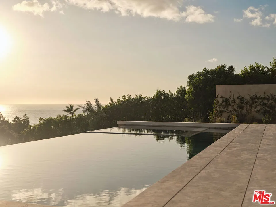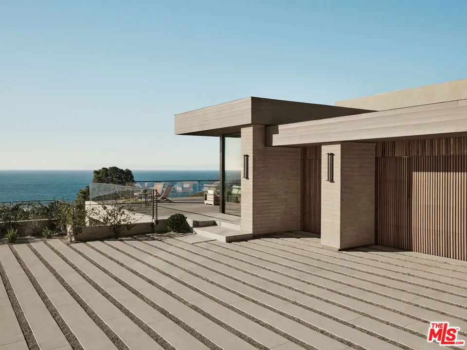 Introducing this exceptional new construction organic modern architectural home, featuring interior design by Atana Collective and built by Aksel Development, known for their custom homes and commitment to distinctive residences. Situated on 1.25 acres, this property features well over 10,000 SF of interior and exterior entertainment space, featuring 5 bedrooms and 7 bathrooms. The gracious family and living room showcase 12-15 foot ceilings with walls of glass that open to an expansive Golden Balau exotic hardwood deck offering whitewater ocean vistas. White oak flooring and ceilings throughout, paired with solid walnut interior doors and walnut-oak cabinetry, create a warm, soothing contemporary ambiance. The gorgeous chef’s kitchen includes a large center island topped with leathered Taj Mahal Quartzite stone, Miele appliances, and a spacious walk-in pantry. The ocean-view primary suite features walls of glass leading to a private terrace, a fireplace, and a luxurious bath with dual sinks and closets, a floating tub, and a large walk-in shower with sliding doors to the outdoors. Three additional ocean-view bedroom suites are located on the lower level, while the wellness lounge offers a fitness center, sauna, steam room, massage room, and bar. Outside, an ocean-view infinity pool and spa adjoin the main living area, complemented by ample grassy yard space, an outdoor kitchen, and two fire pits. A large motor court provides for an entertainer’s dream, with plentiful parking alongside a spacious 3-car garage offering direct access to the over 3,000 SF deck, all enhanced by a Control 4 smart home system, camera security, and built-in speakers throughout.