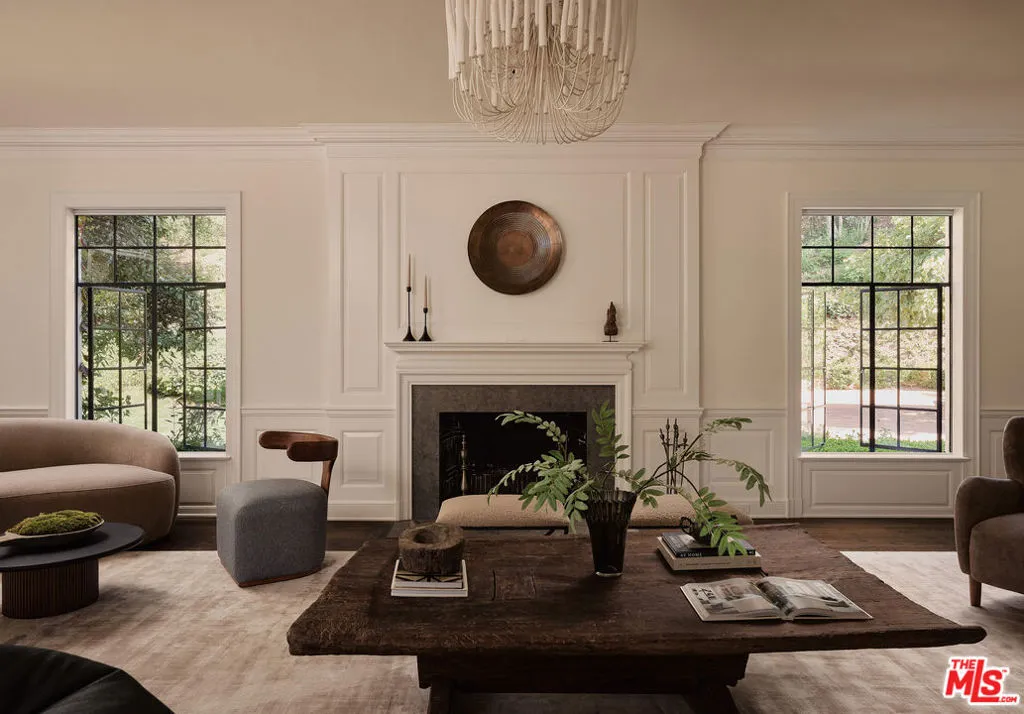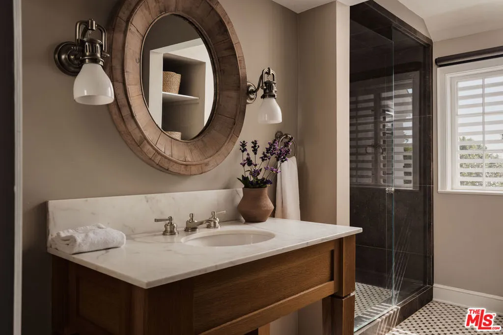 Originally built in 1938 for iconic Hollywood actress Virginia Bruce, this gated Pacific Palisades estate is a rare fusion of Old Hollywood glamour and modern luxury. Tucked away at the end of a quiet cul-de-sac, the 7-bedroom, 8-bath residence spans over 8,000 square feet and sits on more than 1.5 acres of exquisitely landscaped grounds, offering exceptional privacy and scale. Manicured lawns, koi ponds, and winding garden paths create a serene, resort-like setting, anchored by a pool, spa, and fire pit, ideal for both intimate living and grand entertaining. Inside, timeless East Coast architecture meets refined contemporary updates. Highlights include a stunning Calacatta Gold marble kitchen, formal living and dining rooms, a one-of-a-kind British pub with a hidden staircase, and a fully self-contained guest apartment. The expansive primary suite is a private retreat, featuring dual bathrooms, custom dressing rooms, and a balcony overlooking the gardens. Rich in history yet thoughtfully updated for today’s lifestyle, this extraordinary estate offers a secluded sanctuary just moments from Palisades Village, the coastline, and the best of the Westside.