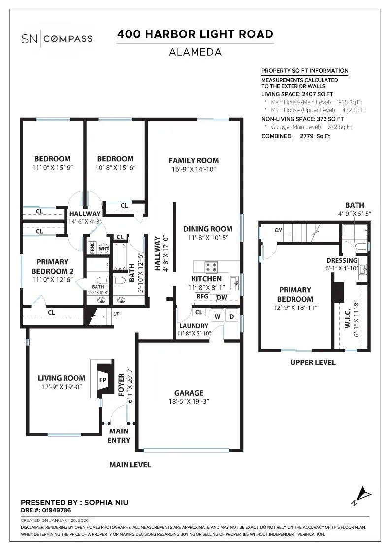Sophisticated Mid-Century Home just 1 Block from Alameda Beach! Welcome to 400 Harbor Light, a spacious and updated 4 bedroom, 3 bath 2,779sqft home on a 5,000sqft lot located in the vibrant yet serene Southshore neighborhood. With hardwood floors and stunning modern details, the home reflects a stylish and relaxed attitude fitting for the beach side lifestyle. The Living Room with its sleek fireplace as its centerpiece is the perfect area for relaxation or gatherings. The Open Kitchen flows through to the Dining Room and Large Family Room, a spacious layout that is comfortable and functional. A hallway connects 1 full bath, 2 bedrooms and a primary suite with generous closets. Those looking for respite from the activity of the main floor will love the 2nd Primary Suite located on the upper floor. This large and sunny bedroom has a walk-in closet, primary bath, and plenty of room for a seating area. The landscaped, low maintenance front and backyards are dotted with fruit trees. Come discover life by the beach where breathtaking sunsets are just steps away. Location is prime here: just minutes from Southshore Center with its many shops/restaurants, Crab Cove, Park Street, Bus to SF, Ferry to SF, Schools and Parks.