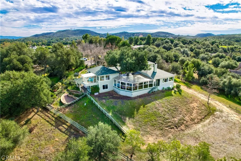 Located just beyond the Orange County border is a rare country retreat, where expansive acreage, privacy, & flexibility come together to offer a lifestyle that is so often elusive in Southern California. Set on an impressive 2.3-acre street-to-street lot, this distinctive property delivers space, serenity, a& opportunity – all within reach of South Orange County & the coastline just a short drive away. Positioned at the end of a quiet cul-de-sac within a private, gated community of only 95 homes, the residence enjoys an elevated setting affording panoramic mountain, hillside, & city-light views. A charming circular gravel driveway welcomes you home, immediately setting the tone for the relaxed, country character that defines this home. The approximately 4,000-square-foot residence offers a thoughtfully designed, retreat-style floor plan anchored by a spacious great room ideal for gatherings & everyday living. One of the home’s most striking features is the expansive enclosed patio with a mature oak tree growing through it & jaw-dropping views, creating a truly one-of-a-kind indoor-outdoor space that cannot be replicated. The layout is further enhanced by two separate bedroom wings, including a private primary suite with beautiful views & balcony, & a separate wing for guest or secondary bedrooms – offering exceptional privacy & flexibility. A full bathroom & guest room is also featured on the main level for added convenience. Adding significant versatility, the property includes a 1 bed/1 bath granny flat with full kitchen & separate entrance, ideal for extended family, guests, multigenerational living, or additional functional space. With over 2.3 acres, your new country home provides ample room for equestrian use, barns, trails, organic gardens, a pool, outdoor entertaining areas, or play spaces – allowing the next owner to tailor the property to their lifestyle vision. Along with convenient access to South Orange County & the coastline, the property also enjoys ideal proximity to Temecula’s wine country & an easy drive to Palm Springs & the Coachella Valley, offering a lifestyle that seamlessly connects coastal, wine country, & desert experiences. This is not a modern coastal home, but rather a warm, character-driven country residence designed for those who value land, privacy, & a true sense of retreat. An extraordinary opportunity to own space, flexibility, & lifestyle all at an extraordinary price. Your best life starts here!