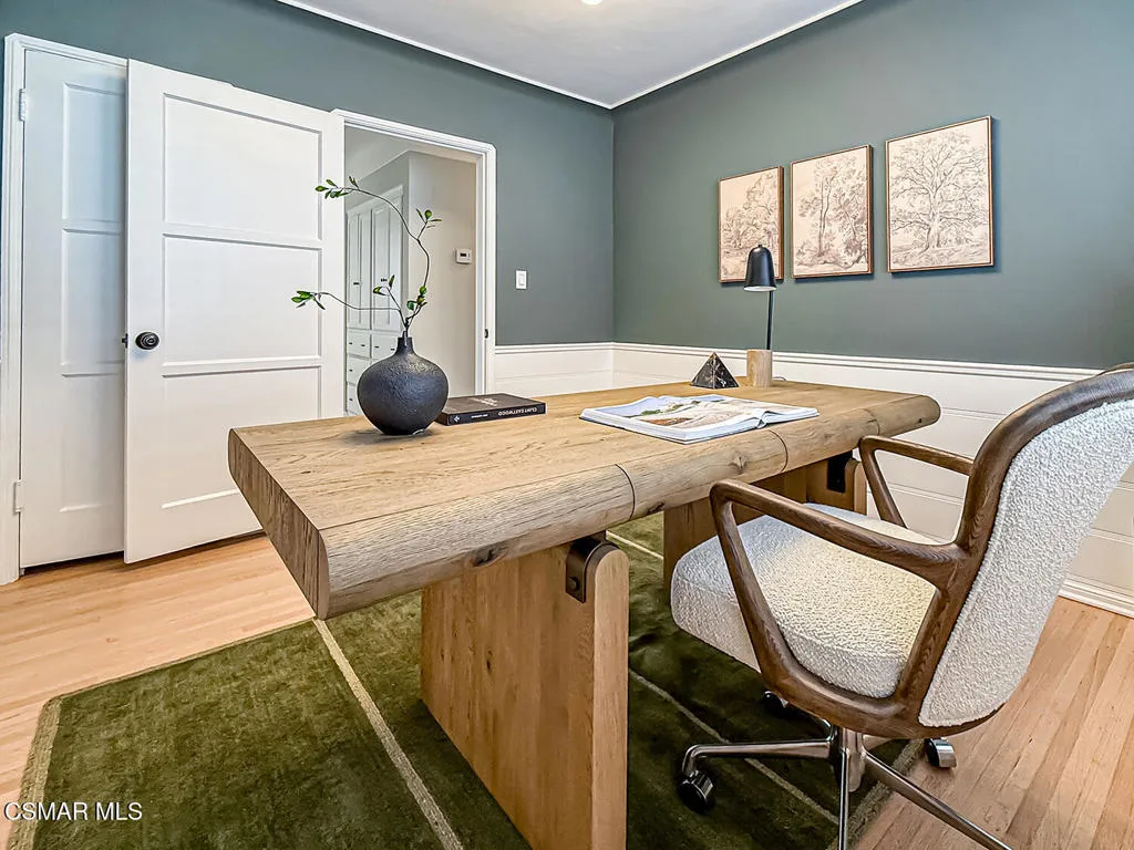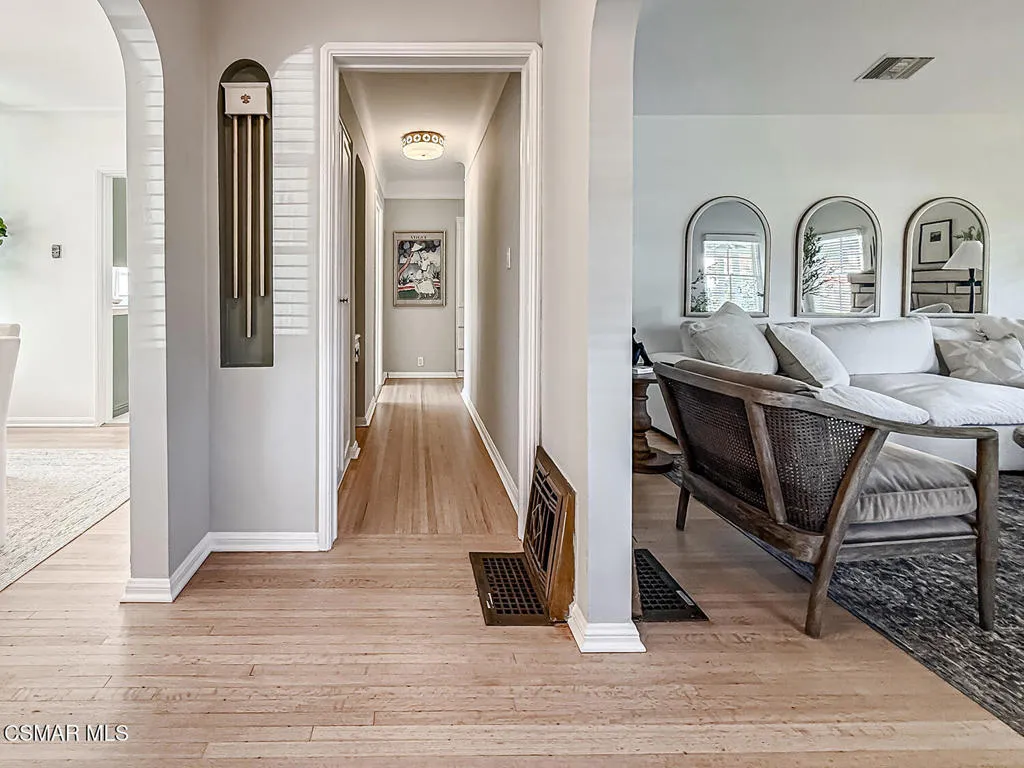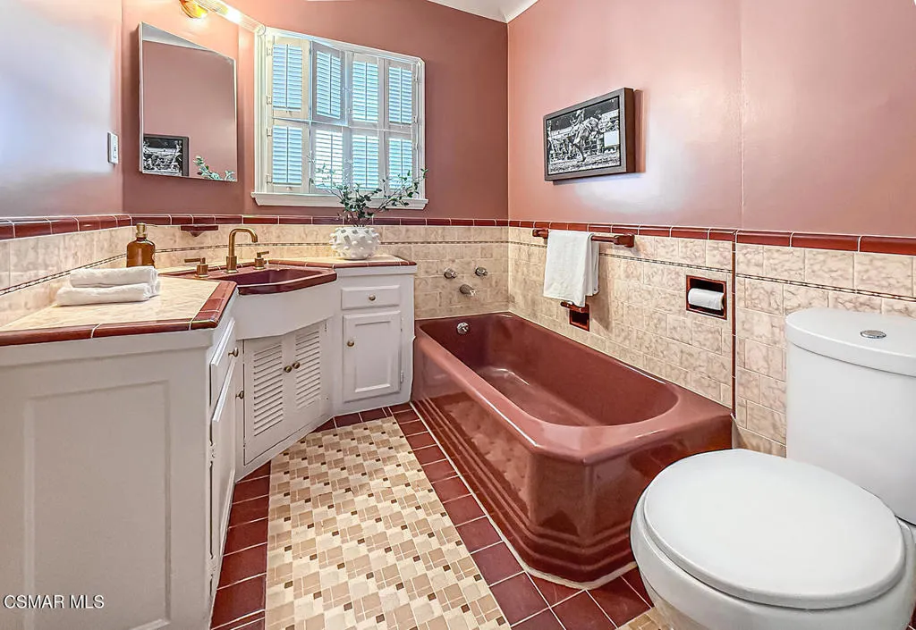 VINTAGE ART DECO BEAUTY in the coveted Westport Heights neighborhood is on the market for the first time in 65 years. Lovingly maintained and recently upgraded, It was designed and built by legendary architect Silas Nowell, whose homes were noted for their sturdy construction, lath and plaster walls, arched doorways and oak hardwood floors. From the minute you walk through the door, you’ll notice those details — the doorways and floors, the Art Deco primary bathroom with its original tiles, the wood-burning fireplace in the formal living room — that maintain the historic feel to this single-story beauty. Yet, the tasteful upgrades to the eat-in kitchen, with its newer appliances and tile floors, the half-bathroom, with its new vanity and upgraded lighting fixtures throughout make this home feel modern and immensely livable. The expansive backyard is an entertainers dream and has been home to hundreds of parties through the years with its large grassy area, raised planters, covered flagstone patio and cozy lower patio with brick flooring and a wood-burning fireplace. The detached garage also has been upgraded with the recent installation of an epoxy floor, stained beams on the ceiling and fresh paint throughout, making it an ideal room for an artist’s studio, home office or man/she cave. A newer HVAC and electrical wiring throughout the home as well as new interior and exterior paint round out the home’s upgrades. Other features include a formal dining room and indoor laundry. One of the first model homes in the country, its location is convenient to LAX, freeways and shopping.