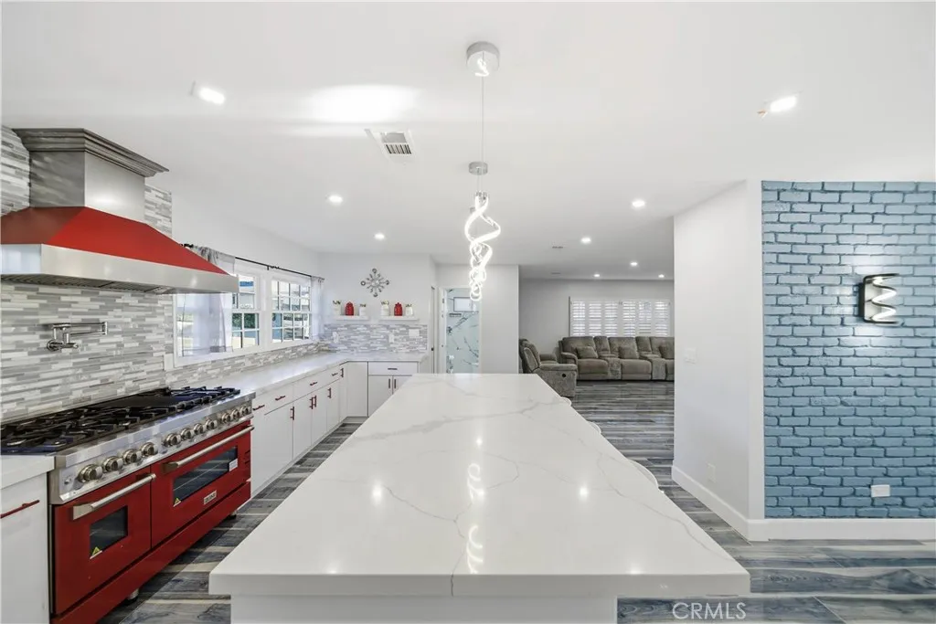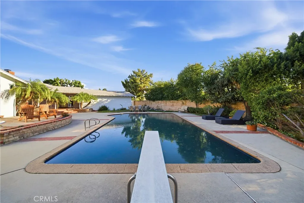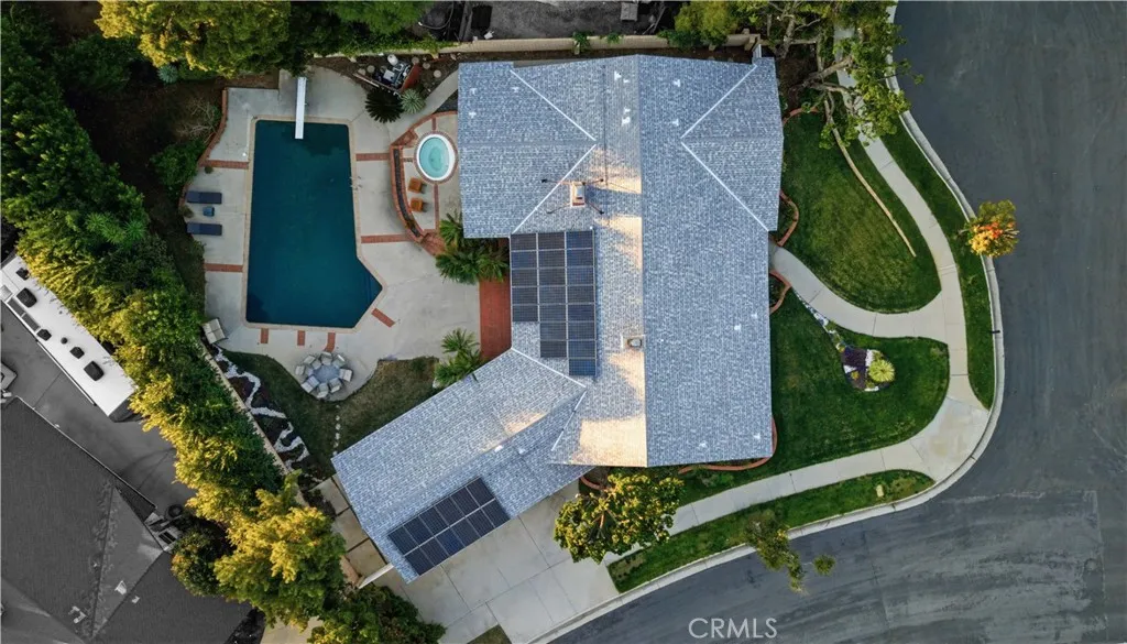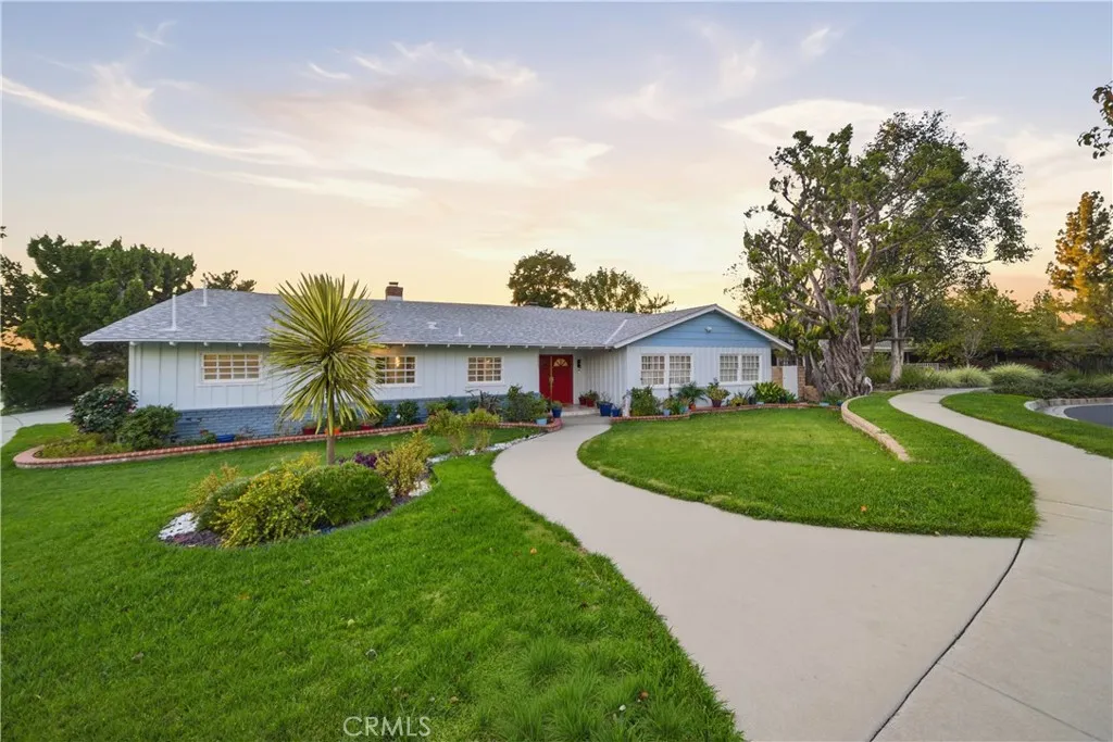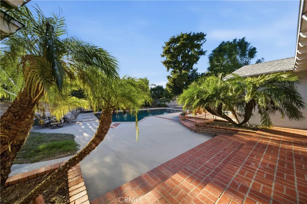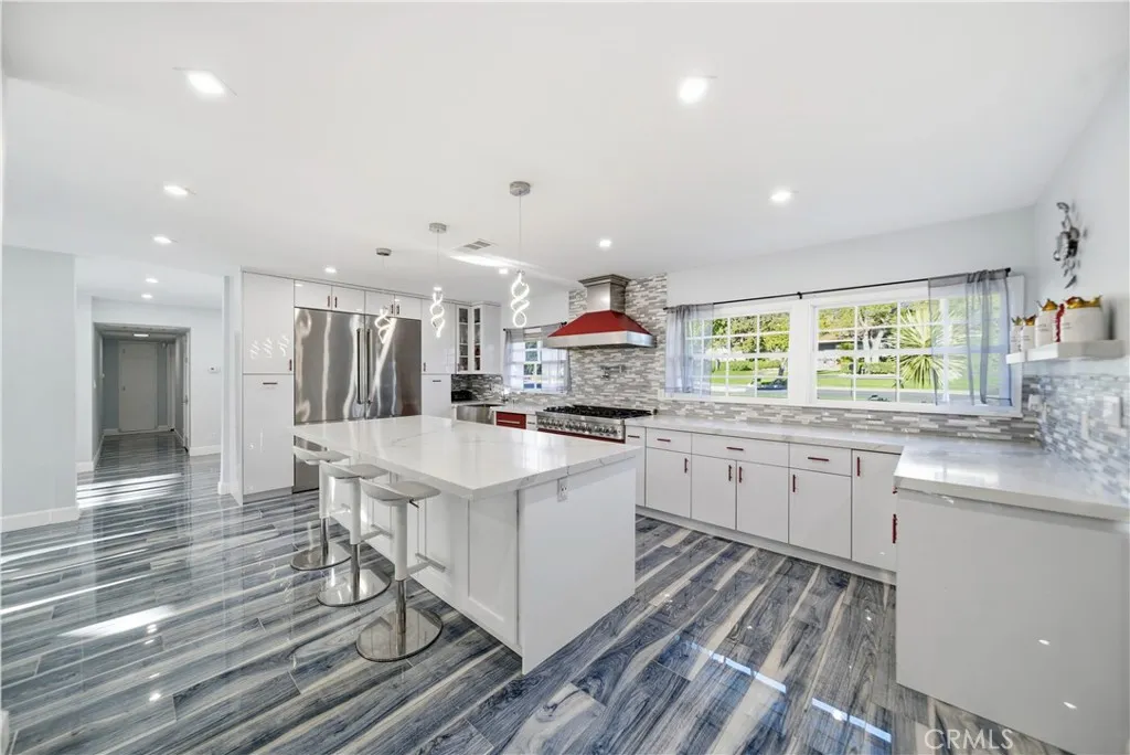 OVER $50,000 price cut! Brand new roof, solar panels in place, ADU potential (ADU plans and drawings available), and a prime location that continues to be a favorite among Northridge buyers. Sprawling single story living in the desirable Scottish Terrace Estates. Nearly 2,800 square feet, all on one level, with elegant porcelain wood-look tile flooring throughout. Step inside to a wide open floor plan designed for both everyday living and entertaining. The gourmet kitchen is positioned at the front of the home and serves as a true focal point. This chef-inspired kitchen is thoughtfully appointed with a high-end ZLINE appliance package, featuring a stainless steel 7-burner double-oven range with statement hood, ZLINE dishwasher, stainless steel farmhouse sink, trash compactor, pot filler, built-in luxury refrigerator, and wine cooler. White cabinetry is elevated with bold red hardware accents, complemented by quartz countertops and a modern gray-toned tile backsplash. The open concept layout flows seamlessly from the kitchen into the family room, formal living room, and dining area. Designed for an indoor-outdoor lifestyle, sliding doors from the main living spaces open to a private backyard retreat featuring a pool and spa, lush greenery, usable lawn, and a massive covered patio with vaulted ceilings. The home offers four bedrooms and three bathrooms. The bath is a standout, featuring a massive glass enclosed wet room with a freestanding soaking tub set against a floor to ceiling tile wall. High-end finishes include sleek matte black hardware and LED backlit mirrors over dual vanities. Situated on a corner lot, this true single story ranch offers a wrap-around lawn, wide concrete driveway, and detached two car garage enhancing both privacy and ADU potential. The home also features a convenient indoor laundry room with washer and dryer hookups and a utility sink for added functionality. A rare opportunity offering space, flexibility, and timeless single level living, ready for its next owner.