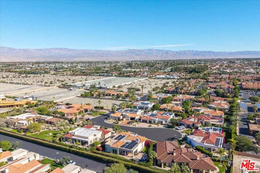Wake up each day to luxurious Rancho Mirage living in the exclusive gated enclave of Carrera Estates. Set on an oversized lot with breathtaking San Jacinto Mountain views, this residence invites a lifestyle centered on elegance, entertaining, and privacy. Sunlight pours through expansive windows, illuminating soaring 14 foot ceilings, travertine floors, and open living spaces designed to gather and relax. Featuring 4 bedrooms, 5 bathrooms, including a casita with a private entry to welcome guests. Gather in the gourmet kitchen which seamlessly flows into the great room and formal dining areas. Retreat to the serene primary suite with its high ceilings, dual vanity bath, and walk-in closet. All bedrooms are ensuite with patio access. Evenings are best enjoyed outdoors, where lush landscaping surrounds a custom saline Pebble Tec pool and spa beneath a star-studded desert sky. Home has solar panels and a climate-controlled 3-car garage, plus a private gated entry. Minutes to Eisenhower Hospital and golfing. Enjoy a stroll to nearby dining, shopping, and entertainment. This home offers more than a place to live. It delivers a refined desert lifestyle.