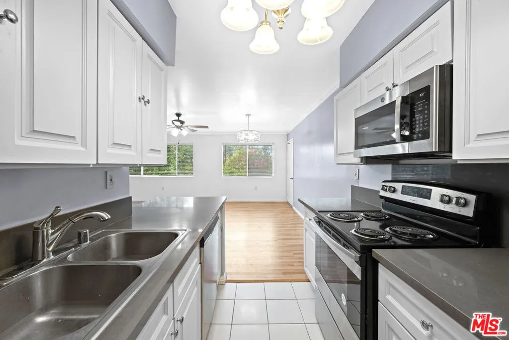 Welcome to this updated top floor 2-bedroom, 1-bath condo in the heart of Studio City, offering privacy, natural light, and peaceful treetop views with a private balcony perfect for morning coffee or unwinding at the end of the day. The modern kitchen features quartz countertops, contemporary cabinetry, and stainless steel appliances, opening to a bright, inviting living space with recessed lighting. New vinyl plank flooring throughout adds a fresh, modern feel, and the upgraded bathroom includes a new bathtub, ceramic tile, modern vanity, and updated fixtures. The spacious primary bedroom offers a walk-in closet, ceiling fan, and recessed lighting, while the second bedroom provides flexibility for guests, a home office, or additional living space. Additional highlights include a newer HVAC system, ceiling fans, and added hallway storage for everyday convenience. Community amenities include a heated pool, sauna, secure access, two assigned parking spaces, and laundry on every floor. Ideally located near Ventura Boulevard, The Shops at Sportsmen’s Lodge, and Fryman Canyon, with easy access to the Westside, this move-in-ready condo offers a great combination of comfort, convenience, and a prime location.