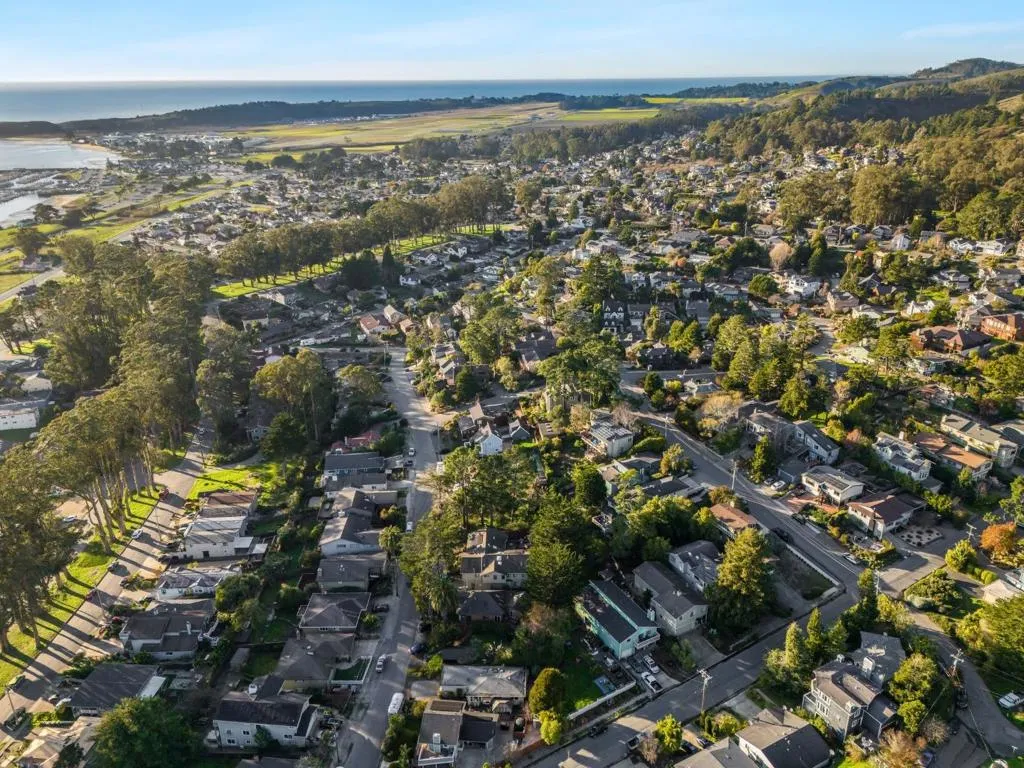 Spacious home with excellent natural light and separate in-law unit in a fantastic coastal location. The large open concept great room has vaulted ceilings, a wood burning fireplace, skylights and and deck off the common area. A distant ocean view can be observed from the primary bedroom suite with walk-in closet, sizable bathroom, and balcony, overlooking the rear garden. Two adjacent bedrooms and a hall bathroom complete upper split level. On the lower level, an in-law unit with a bedroom, bathroom, living room, kitchen, dining space and private deck is accessible through it’s own entrance via the side yard. There’s also a laundry room and entrance to the 3 car garage on the lower level. 0.7+/- miles to Surfers Beach and hiking trails, less then 1+/- miles from shops and restaurants. There will be no open open houses; shown by appointment only.