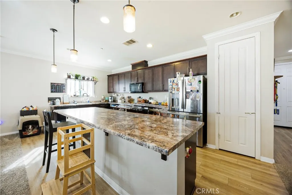Welcome to this exceptional single-story Highgrove residence in the highly desirable Spring Mountain Ranch community, gracefully perched above Grand Terrace and surrounded by breathtaking 360-degree panoramic views. From the moment you arrive, the elevated setting and wide-open skies create a sense of privacy, calm, and connection to the natural beauty that defines this special location. Inside, an open and thoughtfully designed floor plan is highlighted by soaring ceilings, abundant natural light, and spacious bedrooms, offering both comfort and effortless flow for everyday living and entertaining. The heart of the home seamlessly transitions to the backyard, where an inviting outdoor retreat awaits, complete with a large covered patio, ambient string lighting for evenings under the stars, a private above-ground pool, and generous space for gatherings, celebrations, or quiet moments taking in the scenic backdrop and sunset views. Located in a beautiful no-HOA neighborhood, this home enjoys close proximity to Grand Terrace High School, Sandals Church, and convenient access to the 215, 91, and 10 freeways, offering the perfect balance of tranquility, lifestyle, and commuter convenience.