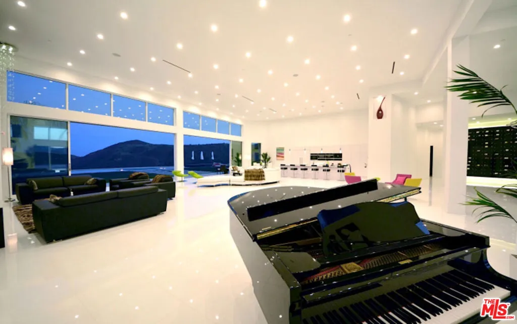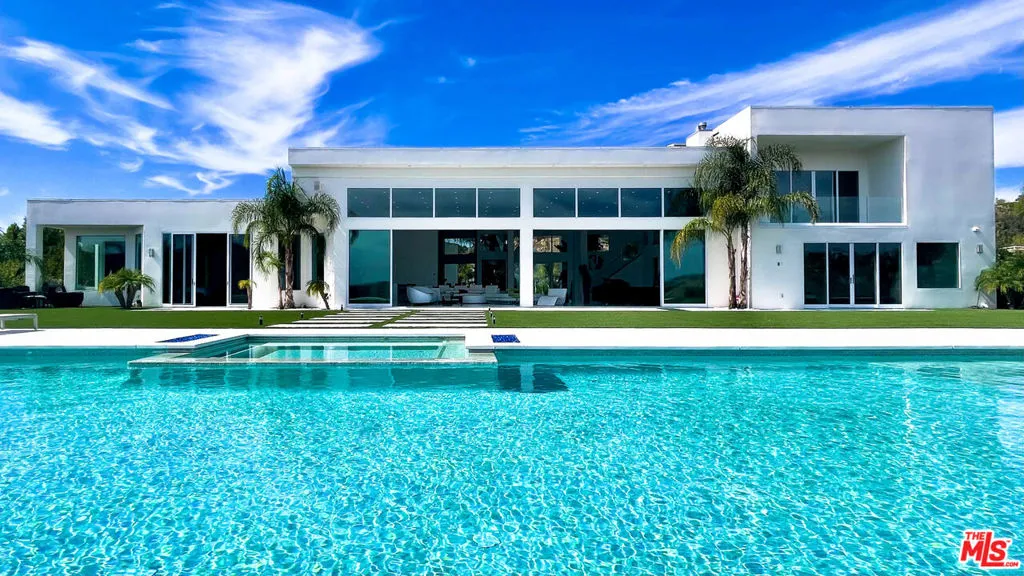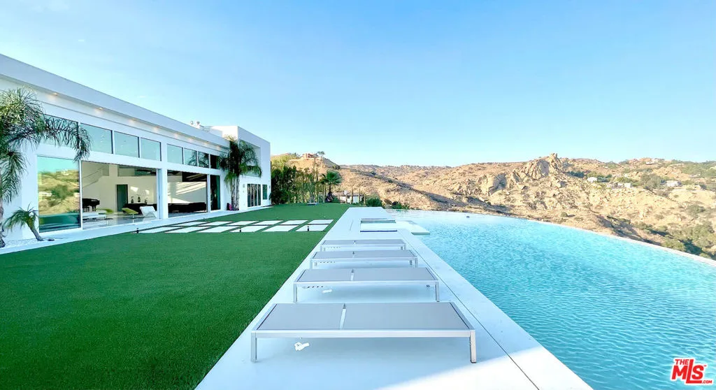 Perched on what feels like a private hillside retreat, this impeccably designed modern residence offers a rare blend of seclusion, sophistication, and sweeping views. The home showcases a state-of-the-art chef’s kitchen featuring an oversized Caesarstone island, custom cabinetry, Miele cooktop, oven and speed oven, three warming drawers, a Thermador refrigerator and freezer, and a built-in espresso maker. Entertain in style in the formal dining room, highlighted by a dramatic, glass-enclosed, full-wall wine display. An oversized fireplace anchors the living space, while the primary suite rivals a five-star resort with a luxurious soaking tub, custom stone accent walls, sitting area, walk-in closet, and automatic shades. A theater-quality media room is fully equipped with a projector, advanced AV system, and acoustic treatment for an immersive experience. Additional highlights include soaring ceilings, energy-efficient windows and glass doors, and a true smart-home system wired for Wink and Nest. With ideal east-west exposure, the property invites you to unwind from the day and savor both the beautifully designed grounds and unforgettable sunsets.