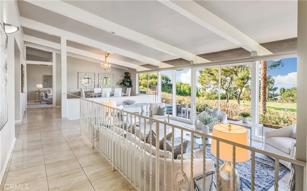 VIEWS, VIEWS, VIEWS! This elegant One-level mid century estate boasts Panoramic Ocean and Golf course views from almost every room. Located on a serene cul-de-sac, this view home offers tranquil living in the prestigious Country club neighborhood. Upon entering the gate, a private courtyard with a beautiful pool leading to a double-door entrance into a stunning foyer. You will be greeted by a breathtaking view and the expansive sunken living room with walls of glass. Soaring beamed ceilings and expansive windows/doors fill the home with natural light, accentuate the open living space. The graceful living room features beautiful travertine floor, a grand fireplace and sliding doors that open to a view patio. The formal dining room is perfect for entertaining, ideal for hosting unforgettable gatherings while enjoy stunning Sunset views. Remodeled Kitchen completes with a cozy dining nook. The two versatile family rooms are very spacious, ready to transform into the places suit your lifestyle, such as home entertainment, home office, game room etc. Three generously sized bedrooms in a separate wing, while the primary suite set apart off the entry hall, features a dressing area, en-suite bathroom and a private atrium patio. There is a cozy library/bedroom with a fireplace provide additional living space, with sliding doors opening to back patio. This exceptional home is also close to award-winning Palos Verdes schools, park, and trails. With its enviable floor plan, coveted location and world class views, this special home is ready for you to make it your own sanctuary.