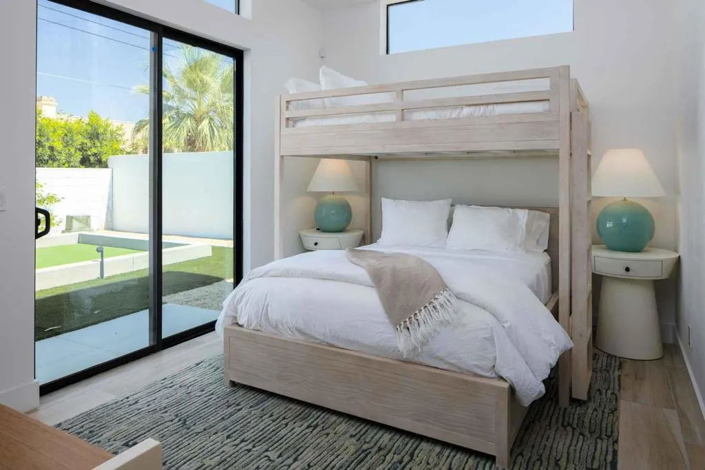 New co-ownership opportunity: Own one-eighth of this professionally managed, turnkey home. Desert Estate is a sleek home with mountain views, private courtyard and bocce court. The home has three en suite bedrooms, plus an attached casita and bath. Two sets of folding sliders connect living spaces inside and out. The front courtyard includes a pool, spa and tanning ledge, while the rear yard has an outdoor kitchen and the bocce court. The gourmet kitchen features custom cabinets, quartzite countertops, backsplash and waterfall edge island, and stainless steel appliances. The dining area includes a wine fridge. The solar-powered home, within walking distance of Old Town La Quinta, has a 3-car garage. The home will have all new furniture and be professionally decorated.