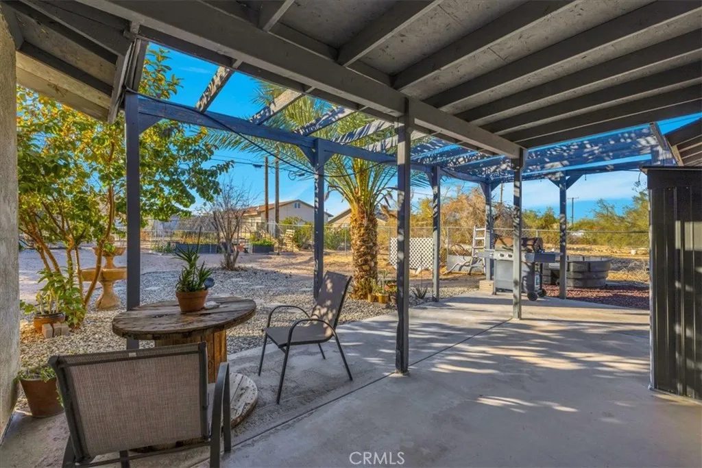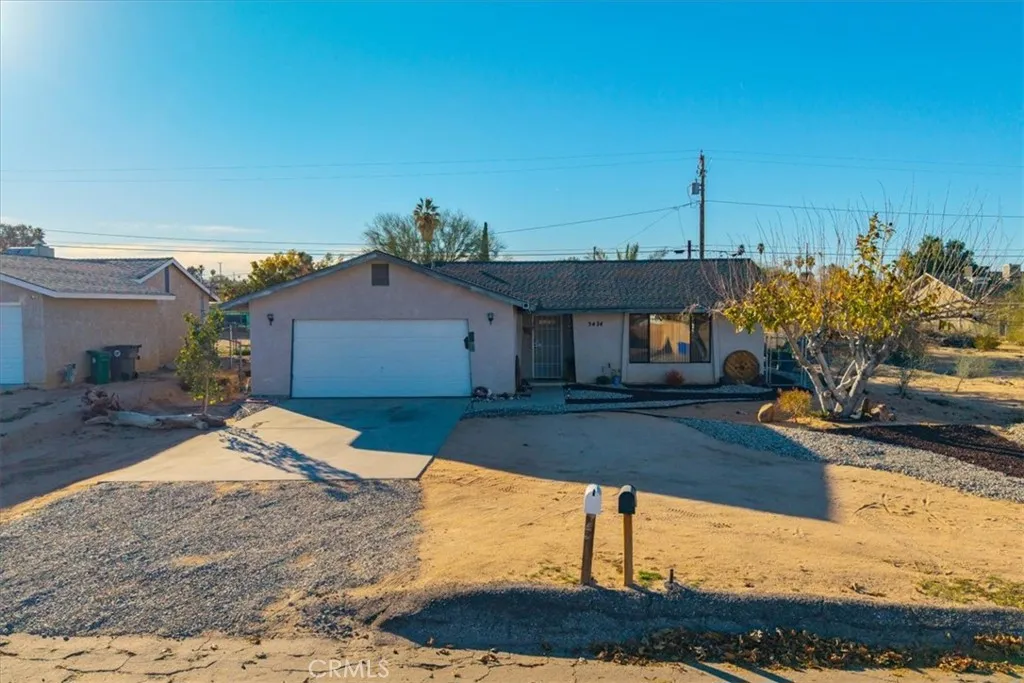Welcome to 5474 Cahuilla Ave, a lovely 3 bedroom 2 bath home located in the charming Chocolate Drop neighborhood of 29 Palms. This beautifully maintained property features 1,238 square feet of living space with an attached 2 car garage and numerous upgrades throughout. To the right of entry is the spacious living room which boasts high ceilings, a large mini-split, carpeted flooring and several large windows that let in an abundance of natural light. The living room flows effortlessly into the formal dining area and kitchen where you’ll find earth-toned tile flooring, modern fixtures, stainless steel appliances, wood cabinetry with ample storage space and bar seating. All 3 bedrooms adorn painted concrete flooring, individual mini-splits to keep you comfortable year-round, ceiling fans and both bathrooms feature sizable single sink vanities with shower/tub combos. Not to mention, this home has solar! (Buyer to assume SunRun power-purchase agreement) Outside you’ll be delighted to find a lovely covered patio, mature desert plants and landscaping, a fully fenced yard and plenty of space to entertain or relax around a firepit on a starry desert night. With close proximity to downtown, schools, shopping, restaurants, the marine corps base and more, all that’s missing is you! Come take a look & let this home’s charming allure do the rest, your new desert home or weekend retreat awaits!