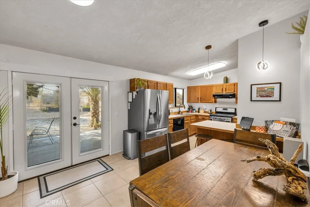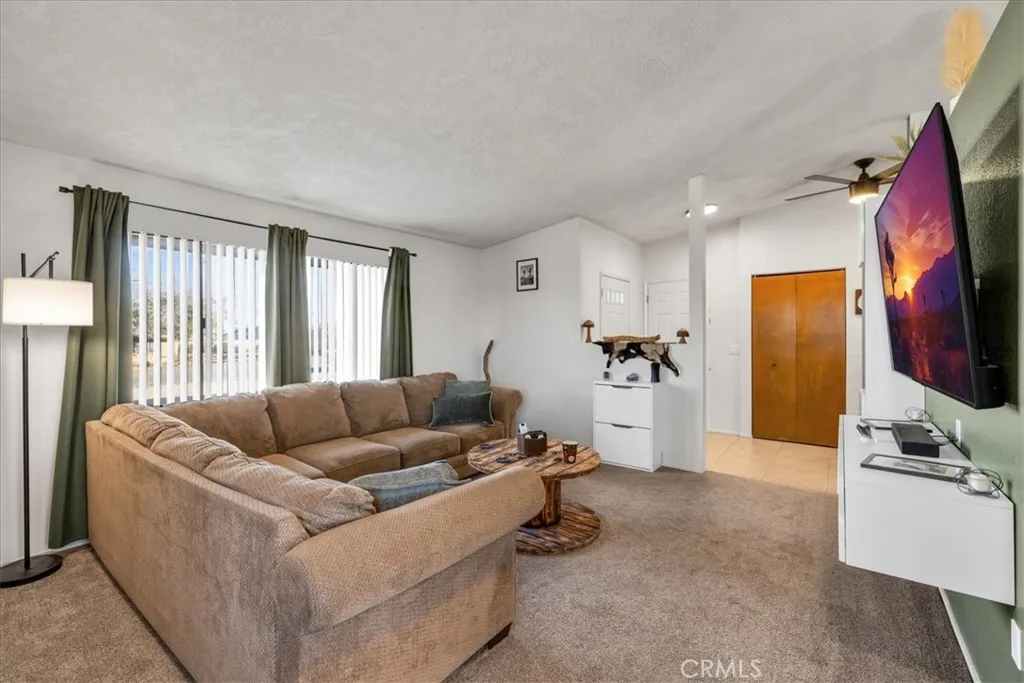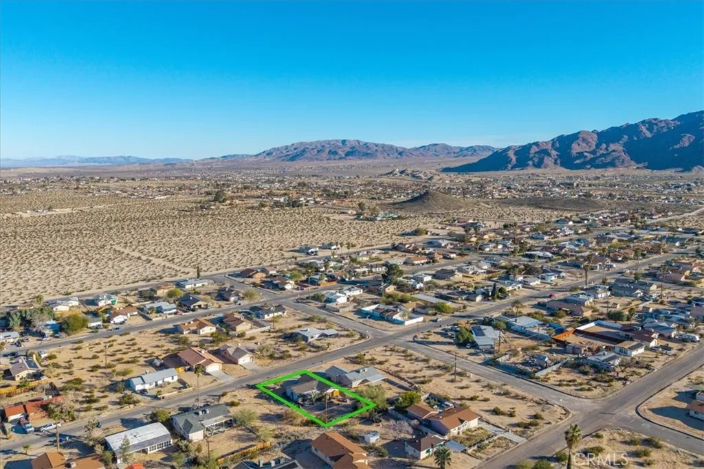 Welcome to 5474 Cahuilla Ave, a lovely 3 bedroom 2 bath home located in the charming Chocolate Drop neighborhood of 29 Palms. This beautifully maintained property features 1,238 square feet of living space with an attached 2 car garage and numerous upgrades throughout. To the right of entry is the spacious living room which boasts high ceilings, a large mini-split, carpeted flooring and several large windows that let in an abundance of natural light. The living room flows effortlessly into the formal dining area and kitchen where you’ll find earth-toned tile flooring, modern fixtures, stainless steel appliances, wood cabinetry with ample storage space and bar seating. All 3 bedrooms adorn painted concrete flooring, individual mini-splits to keep you comfortable year-round, ceiling fans and both bathrooms feature sizable single sink vanities with shower/tub combos. Not to mention, this home has solar! (Buyer to assume SunRun power-purchase agreement) Outside you’ll be delighted to find a lovely covered patio, mature desert plants and landscaping, a fully fenced yard and plenty of space to entertain or relax around a firepit on a starry desert night. With close proximity to downtown, schools, shopping, restaurants, the marine corps base and more, all that’s missing is you! Come take a look & let this home’s charming allure do the rest, your new desert home or weekend retreat awaits!