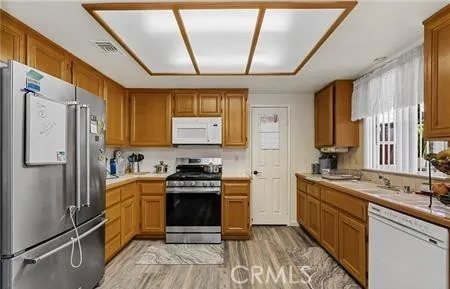 Discover resort-style living in the highly desirable Serrano del Vista, a premier 55+ gated community in south Banning, conveniently located just minutes from Interstate 10 freeway. This immaculate home offers a bright and spacious floor plan featuring 2 spacious bedrooms, 2 bathrooms, and a separate dining area. The inviting living room boasts a cozy fireplace, while the lovely kitchen provides ample storage. Additional highlights include central heating and central A/C, and laminate flooring throughout, and an attached two-car garage with automatic opener. The home also features a laundry room inside the home.