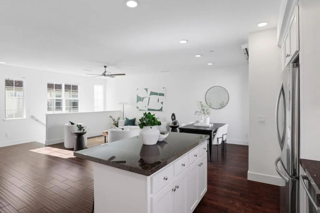 Modern, light-filled 3-bedroom townhome in the heart of Downtown Sunnyvale, offering an exceptional blend of style, comfort, and location. The open-concept kitchen features granite countertops, a generous island, and stainless steel appliances, flowing seamlessly into the dining and living areas perfect for everyday living and entertaining. Sunlight pours through the home, highlighting the spacious layout and three well-proportioned bedrooms. Convenient upstairs laundry adds ease, while a paver patio provides an inviting outdoor retreat. The attached garage includes an EV charger, complemented by ample community parking. Unmatched downtown location just steps from Caltrain, Whole Foods, Target, Philz Coffee, the Farmers Market, AMC Theaters, the public library, and more. A commuters dream with quick access to Caltrain, El Camino Real, Central and Lawrence Expressways, Highways 237 & 85, and Interstate 101plus easy reach to major technology campuses. Truly an incomparable location for modern Silicon Valley living.