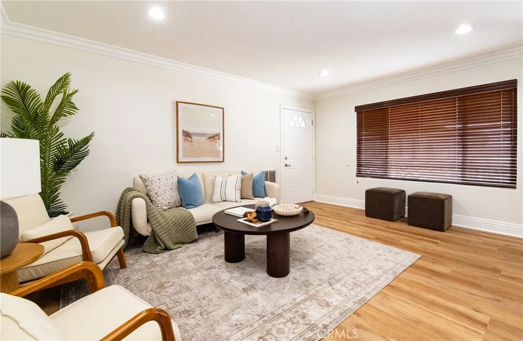 Welcome to this recently renovated, bright, and inviting 2-bedroom, 1-bathroom condo nestled in the highly desirable Zaferia District of Long Beach. This property offers a perfect blend of comfort and modern style.This well-designed 700 sq. ft. unit features a spacious open-concept living and dining area with crown molding, wide baseboards, and recessed lighting throughout. The interior boasts new vinyl flooring, fresh paint, and large double-pane windows that provide ample natural light and views of the courtyard. The kitchen is fully equipped with new stainless-steel appliances—including a refrigerator, stove, dishwasher, and microwave—complemented by white cabinetry and granite countertops. Both bedrooms provide generous closet space, including one walk-in closet. Residents can enjoy a large common deck area and beautifully landscaped grounds featuring slate walkways and a fountain. The gated community is pet-friendly and offers a community laundry area and well-maintained common spaces. Conveniently located near shops, restaurants, and the beach, this condo provides easy access to everything Long Beach has to offer. HOA fees include water and trash, making this a low-maintenance and practical choice. This home is a perfect opportunity for first-time buyers or anyone seeking a stylish, move-in-ready condo in a prime location.