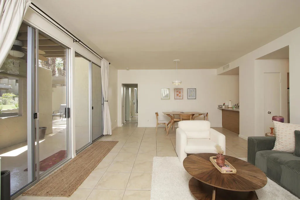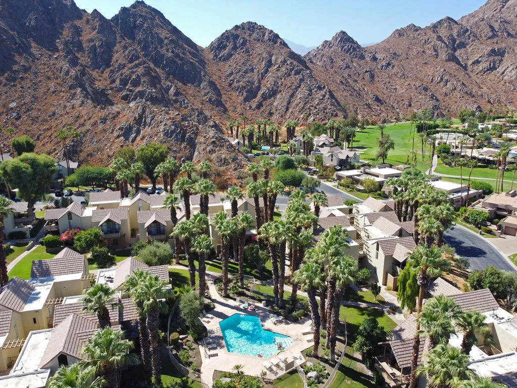 FEE land (you own it!) The development allows for short-term rentals of 7 days or longer! 2 large bedrooms, en suite plus a 3rd full bathroom that allows for 6 guests comfortably. Large, open floorplan with the opportunity to lock off one bedroom and bathroom into a separate, revenue-building suite with a separate entrance, its own temperature control and water heater. In fact, this unit will lock off 3 different ways allowing it to pay you, and have it available for private use! Full flexible, revenue building resort living for you, your guests or family in a beautiful Indian Wells gated location. South-side of Highway 111 with ample storage, clean lines, and on IID Electric (lower bills). Light floods through the large floor-to-ceiling glass sliding windows that spill into an oversized, wraparound porch accessed from the great room, and primary bedroom. True outdoor living adjacent to 3 exquisitely maintained pools and grounds, all with the exclusive address, benefits and amenities of Indian Wells. Walk to the Indian Wells Tennis Garden to take in world-class tournament play or grab the shuttle to the Coachella Music & Arts Festival. Small-town living with big-time amenities! Close to El Paseo shopping district, Old Town La Quinta, Seasonal Polo, Horse jumping at Desert International Horse Park, Thermal Club for racing, Modernism Week, Desert X art and more! Central valley convenience with gated, Indian Wells security!