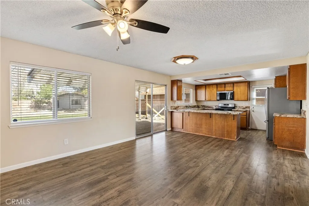 Move-in ready 3-bedroom Westside home with a huge, park-like backyard and paved RV access, tucked in a quiet, peaceful neighborhood with gorgeous curb appeal and professionally landscaped front and back yards. This meticulously maintained home shines with newer interior paint, a newer roof, newly remodeled bathrooms, newer luxury vinyl waterproof flooring, and newer carpet in the bedrooms. Inside, the living room features vaulted ceilings and a cozy fireplace. The spacious kitchen offers newer LED lighting and custom Stone Crafters countertops, and opens to the family room with built-ins—ideal for everyday living and entertaining. Step outside and unwind in your private, oversized backyard with a covered patio, additional side covered patio, paved RV access, plenty of grass, a river rock bed, and mature trees that provide exceptional privacy. A storage shed with electrical adds extra function for hobbies, storage, or a workshop setup. Centrally located near schools and shopping and just minutes to the freeway—this home is a must-see. Bonus: new garage door, and the refrigerator, washer, and dryer are included, offering great cost savings for the new owner.