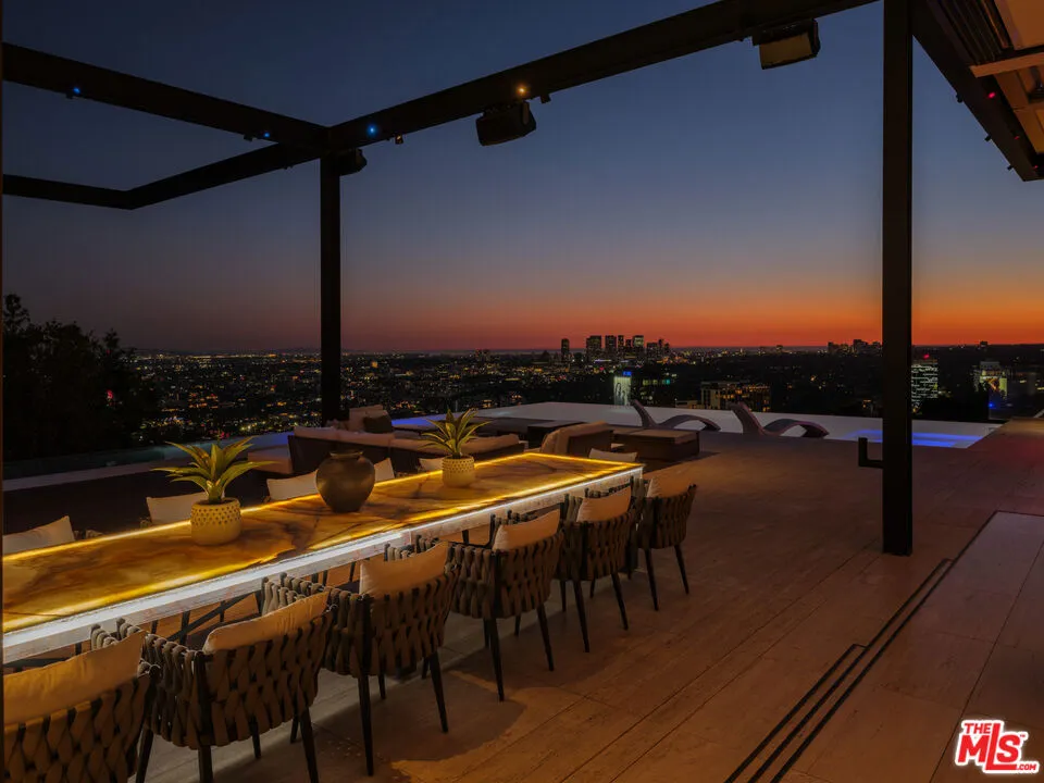 Perched above the city on a coveted promontory, 1305 Collingwood Place is a statement estate where architecture, technology, and sweeping views converge. Spanning approximately 11,800 square feet, this six-bedroom, seven-bathroom residence is designed for those who value scale, privacy, and effortless indoor-outdoor living. A dramatic retractable glass wall dissolves the boundary between inside and out, unveiling panoramic vistas stretching from Downtown Los Angeles to the Pacific Ocean. The expansive entertainer’s deck functions as a private resort, complete with an infinity-edge pool, spa, fire feature, and built-in barbecue ideal for sunset gatherings or quiet mornings above the city. The primary suite occupies its own serene level, offering a private balcony with sweeping views, a spa-like bath with soaking tub, and dual walk-in closets creating a true retreat within the home. Additional amenities include a temperature-controlled wine cellar, media room, state-of-the-art gym, and spa and sauna accented with salt walls for ultimate relaxation. The residence is fully integrated with Savant smart-home technology, allowing seamless control of lighting, climate, and security throughout. A rare 20-foot, three-car garage with lift capability accommodates up to six vehicles, completing a property that effortlessly blends luxury, innovation, and livability. This is a rare opportunity to experience elevated Southern California living at its finest.