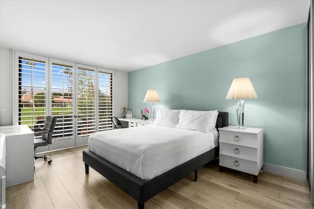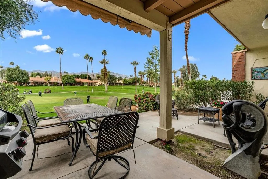 Discover unparalleled elegance with this Santa Barbara Plan 20M condo, perfectly positioned within the prestigious Monterey Country Club. Boasting a prime west-southwest orientation, the patio offers sweeping, panoramic views of the 11th green as well as the majestic Santa Rosa and San Jacinto mountain ranges. Revel in breathtaking sunsets behind Mt. San Jacinto all year round, providing a serene backdrop to unwind after a round of golf.This exquisite 2BR/2BA sanctuary spans 1,303 square feet and harmoniously blends contemporary flair with timeless sophistication. Gleaming new flooring enhances the airy layout, while chic light fixtures infuse the space with modern glamour. The living area seamlessly integrates with an upgraded kitchen, perfect for the discerning chef. Bathrooms have been meticulously renovated to the highest standards, featuring spa-like tranquility with high-end finishes and designer details.The master suite serves as a private retreat, offering ample space and stunning views of the verdant surroundings. Step outside to your private patio, an idyllic setting for al fresco dining or quiet reflection. Ideally situated near the world-renowned El Paseo shopping district, indulge in unparalleled convenience with fine dining and exclusive boutiques just moments away. This residence transcends mere living; it is a statement of luxury and comfort for those who appreciate the finest aspects of life.
