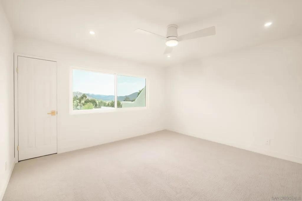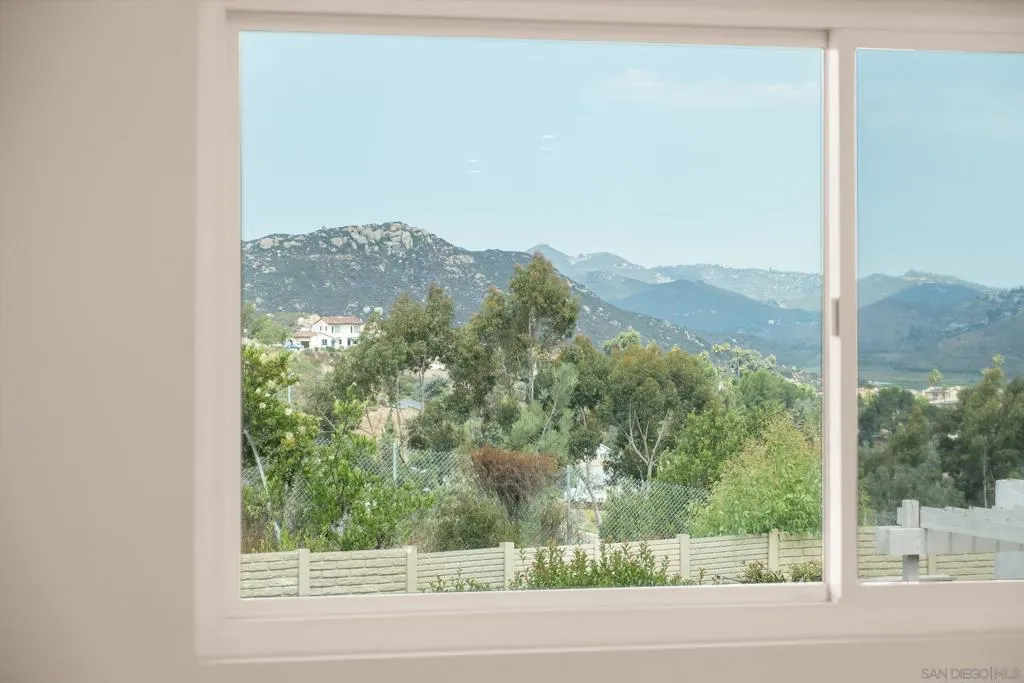FHA & VA Approved Complex! Enjoy fantastic views of the mountains and Lake Hodges from this beautifully updated upstairs corner unit, filled with natural light and vaulted ceilings in the living room. This stylish home features brand-new white oak cabinetry, quartz countertops, and a fully refreshed bathroom for modern comfort. The spacious primary bedroom offers a huge walk-in closet plus an additional closet for plenty of storage. New dual-pane windows throughout, plush new carpeting, and a newer central HVAC system provide year-round comfort. A stacked washer and dryer are conveniently located in the hallway closet. Unit comes with one covered carport and one assigned open space just outside the unit, along with ample guest parking. Don’t miss this move-in-ready gem with serene views and quality upgrades!
