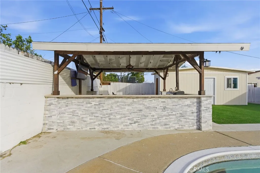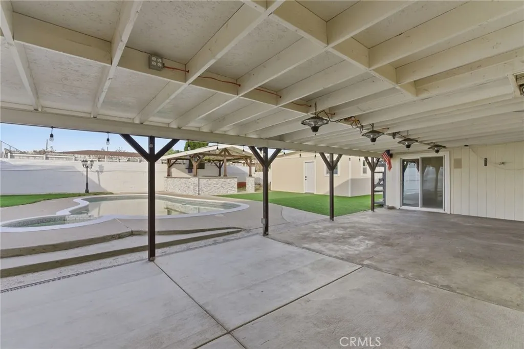 The backyard offers a pool and jacuzzi, creating a great setting for relaxation and outdoor enjoyment. A recently installed pergola adds shaded space for gatherings, with additional potential for a buyer to add their own finishing touches and enhancements over time.