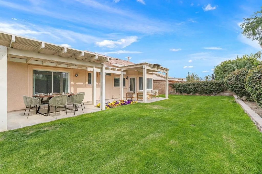 Welcome to this beautifully refreshed 3-bedroom, 2-bath home offering 1,709 sq. ft. of light-filled living space, ideally situated at the end of a quiet cul-de-sac in the desirable Monticello II community. Vaulted ceilings create an airy, open feel throughout the main living areas, while thoughtful upgrades make this home truly move-in ready.The kitchen features granite countertops, stainless steel appliances, and ample cabinetry, opening seamlessly to the dining spaces and separated from the living room with a cozy fireplace–perfect for both everyday living and entertaining. Recent improvements include fresh interior and exterior paint, brand-new carpet in the bedrooms, and upgraded tile flooring throughout the main living areas. Step outside to a generously sized rear yard complete with two covered patios, offering plenty of space to relax, entertain, or customize to your outdoor vision. Additional highlights include an extremely low HOA of just $100 per month, RV parking, a rare find for the area. Centrally located near shopping, dining, and local conveniences, this home combines comfort, value, and location in one exceptional package.