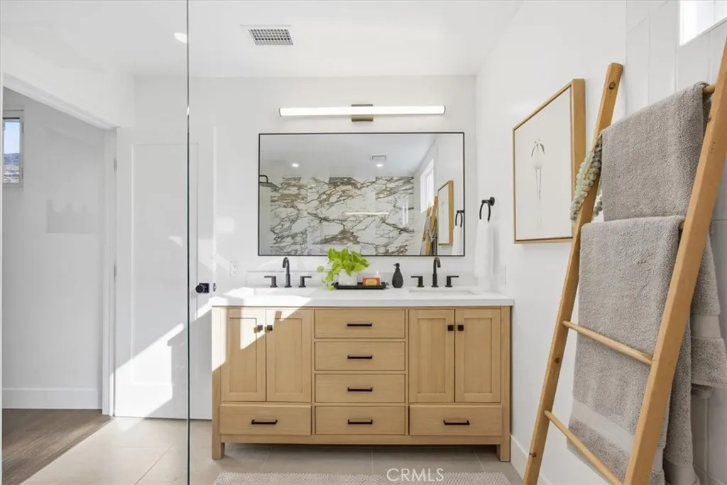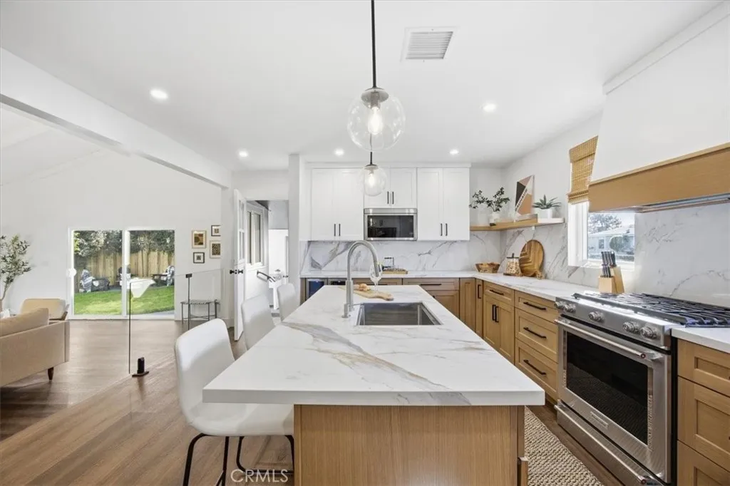 Bathed in natural light and set on a sunny corner lot in the heart of Del Aire, this fully remodeled home delivers effortless coastal style with a modern edge. Vaulted ceilings and expansive sliding glass doors create an airy, open feel, seamlessly connecting the living space to an expansive grassy backyard—ideal for weekend gatherings, barefoot play, or relaxed evenings under the stars. The patio firepit sets the scene for cozy nights with friends, while the breezeway bar with swing seating adds a playful, laid-back beach vibe that’s perfect for entertaining.