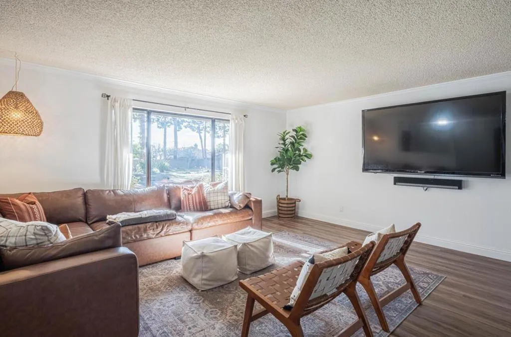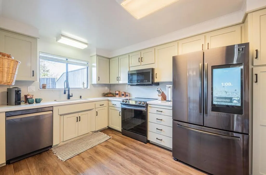Welcome to this rare end-unit townhome, located within a gated community in desirable South Salinas. Ideally positioned within the complex, this well-maintained Harrod-built two-story home offers approximately 1,726 sq. ft. with 3 bedrooms and 2 bathrooms, providing a comfortable and flexible floor plan. The main level features a spacious living room with a cozy fireplace, dining area, and an updated kitchen with quartz countertops and modern black stainless steel appliances. Sliding doors open to a large private paver patio, perfect for entertaining, relaxing, or enjoying outdoor living. Two bedrooms and an updated full bath on the ground level offer excellent flexibility for guests, a home office, or convenient main-level living, while the upstairs primary suite provides a quiet, private retreat. The HOA covers roof, water (interior and exterior), exterior paint, exterior landscaping, exterior maintenance, gated and lighted security, and structural insurance, making ownership easy and low-maintenance. Conveniently located near shopping, dining, parks, healthcare, and everyday amenities, this home offers privacy, comfort, and an exceptional lifestyle in one of South Salinas’ most sought-after neighborhoods.