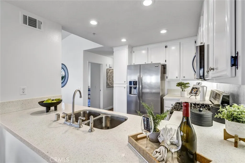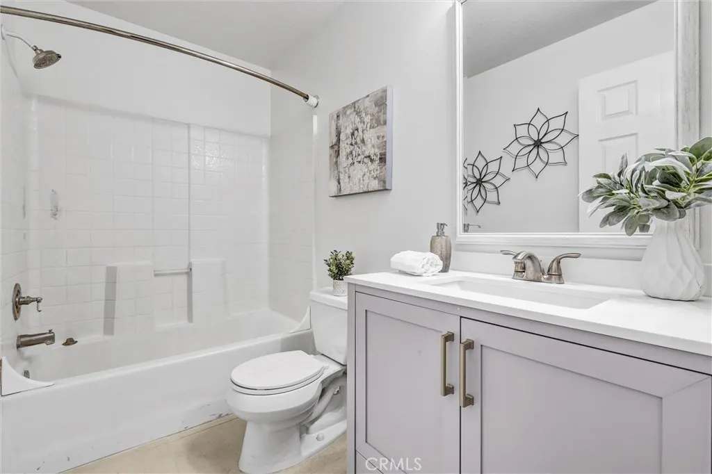 Welcome to the desirable neighborhood of Tierra Montanosa of Rancho Santa Margarita. This beautiful, turnkey end-unit carriage unit condo offers 2 upstairs bedrooms and 2 full bathrooms with an inviting open floor plan, soaring ceilings, and abundant natural light throughout with approximately 1,100 square feet of living space. The spacious living room features a cozy fireplace and opens to a lovely, oversized balcony perfect for relaxing. The modern kitchen is equipped with quartz countertops and stainless-steel appliances. The generous primary suite includes walk-in closet, new dual-sink vanity, and quartz countertops. Other upgrades include dual pane windows, recessed lights, ceiling fans, vinyl flooring, fresh neutral paint, custom bathroom lighting, and more. The attached garage offers direct entry into the home, and a reserved parking space is also included. Enjoy the convenient location within a short walk to Melinda Heights Elementary, O’Neil Regional Park, sports courts, hiking and biking trails, shopping, and dining, within easy reach of Highway 241. Residents enjoy access to a variety of amenities, including resort style swimming pool/spa, Beach Club, play areas, summer concerts, and access to Rancho Santa Margarita Lake. It offers the perfect balance of luxury, convenience, and lifestyle. Don’t miss the chance to make this stunning property your own!