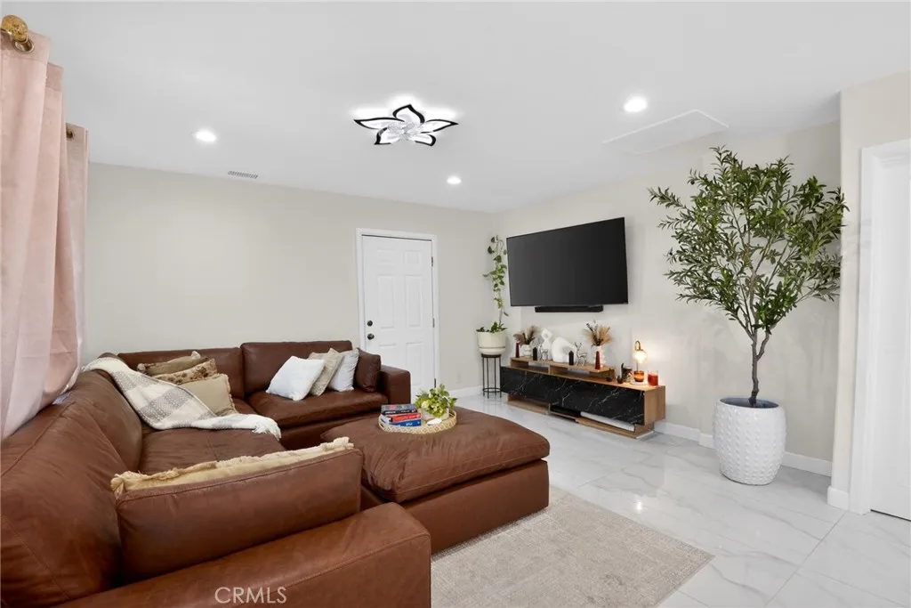 The interior showcases new tile and vinyl flooring, fresh designer paint, modern interior doors, and premium hardware throughout. A completely renovated kitchen anchors the home with custom cabinetry, new countertops, and brand new Samsung Bespoke energy efficient appliances, perfect for both everyday living and entertaining. Every bathroom has been reimagined with spa style finishes, modern vanities, designer fixtures, and latest automatic smart toilets, delivering a true luxury experience. Major system upgrades provide peace of mind, including a new roof, energy efficient Paid Off solar system, upgraded and new plumbing throughout, new sewer lines, a new main plumbing line, upgraded electrical panels, and new AC ducting for improved airflow and comfort. Modern recessed lighting, dimmable switches, and sensor lights enhance both ambiance and efficiency.