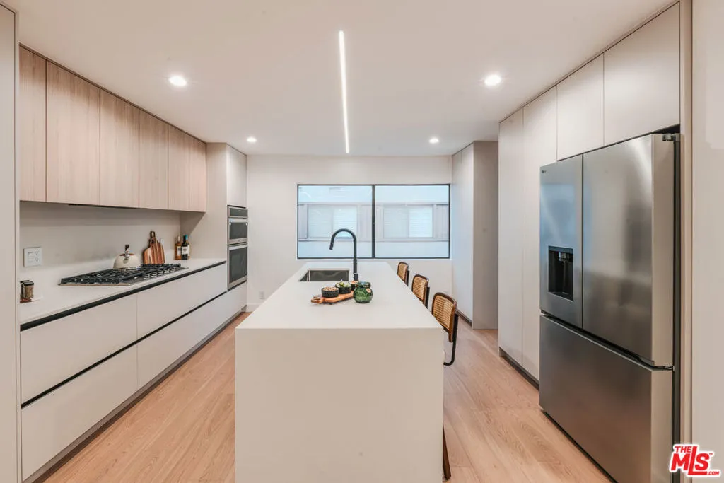 Indulge in luxury coastal living with this extensively renovated townhome in the sought-after Villa Vallarta community. Thoughtfully reimagined with sophisticated finishes and modern comforts, this residence offers 2 bedrooms, 2.5 bathrooms, and an attached two-car garage perfectly blending style, convenience, and serenity. Step inside to an elegant open-concept living space appointed with high ceilings, hybrid engineered wood floors throughout, recessed and linear lighting, custom glass railings, and custom built-ins. The inviting living room showcases a decorative fireplace and a wall of glass that opens effortlessly to a private patio equipped with a BBQ, creating a seamless indoor/outdoor flow ideal for morning coffee, entertaining, or alfresco dining. Adjacent, the dining area flows into the open-concept chef’s kitchen, where a generous center island, LG appliances, beverage cooler, breakfast bar, custom cabinetry, and stunning Dekton countertops come together to create a beautifully executed culinary space. Upstairs, the luxurious primary suite features a spa-inspired bath complete with dual showers, a deep soaking tub, porcelain flooring, a smart toilet, dual vanity, and a custom walk-in closet. The second bedroom offers its own updated ensuite bath with porcelain flooring, another smart toilet, and a custom walk-in closet providing exceptional comfort for guests or family. Additional highlights include a convenient upstairs laundry area, central air and heat, an updated electrical panel, and an attached two-car garage enhanced with epoxy flooring, substantial storage space, and an EV charger. Villa Vallarta’s resort-style amenities offer four pools, four spas, two racquetball courts, beautifully landscaped grounds, and plentiful guest parking. HOA dues include water, high-speed Spectrum internet and cable, earthquake insurance, and association insuranceallowing you to fully embrace the relaxed, coastal Marina lifestyle. All just minutes from acclaimed restaurants, shops, theaters, waterfront paths, beaches, and LAX.