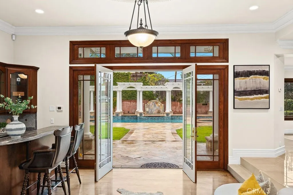 Welcome to the award-winning Arcadia School District home! This professionally designed, luxurious single-story residence with breathtaking mountain views features 4 bedrooms, 3.5 bathrooms designed with an open-concept layout and soaring ceilings. 2004 Custom Rebuilt. This home boasts high-end cherry wood cabinetry, premium appliances, marble flooring, and a living room with bay windows. The expansive family room is equipped with a Bose surround sound system, hardwood floors, and a custom-built bar. Elegant French double doors open to a stunning backyard featuring a Roman-style waterfall swimming pool. The primary bedroom includes a beautiful vanity, shower, and jacuzzi tub. A dedicated office space allows for multiple users simultaneously. This home also features both a Western open-style kitchen and a separate wok kitchen, a formal dining room with a built-in pantry, an independent laundry area with granite countertops and custom cabinetry, and two grand Swarovski chandeliers that enhance the luxurious ambiance. This is a perfect home for both relaxation and entertainment—don’t miss this incredible opportunity!