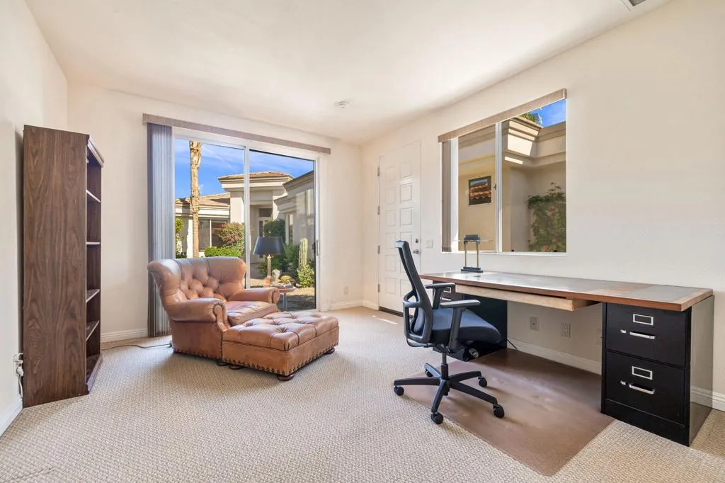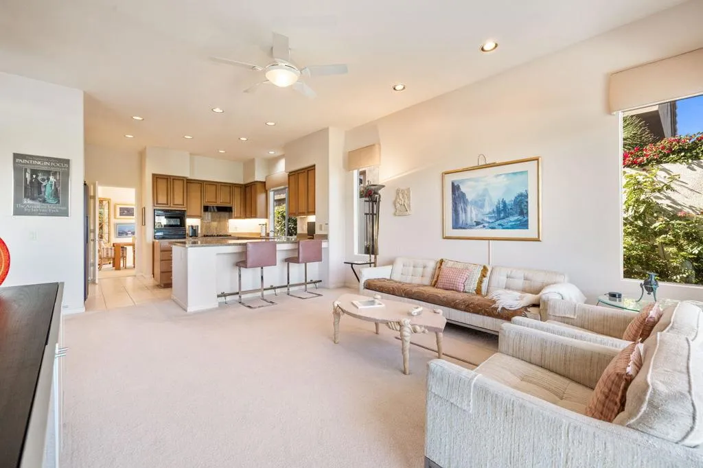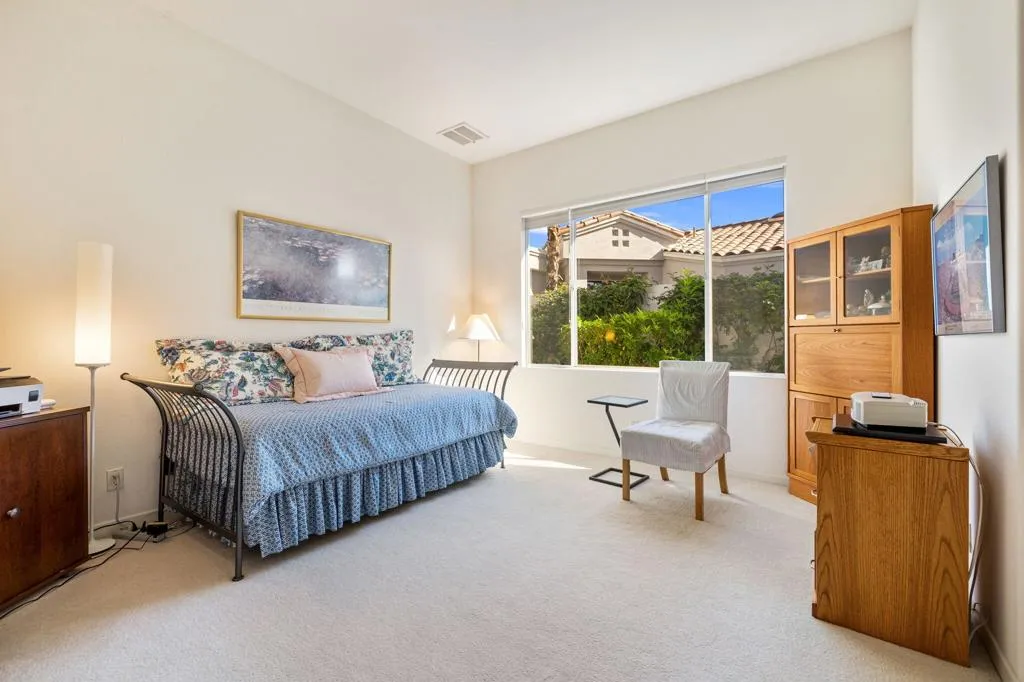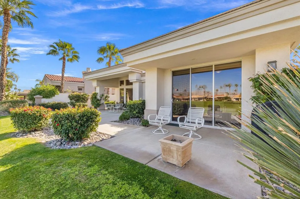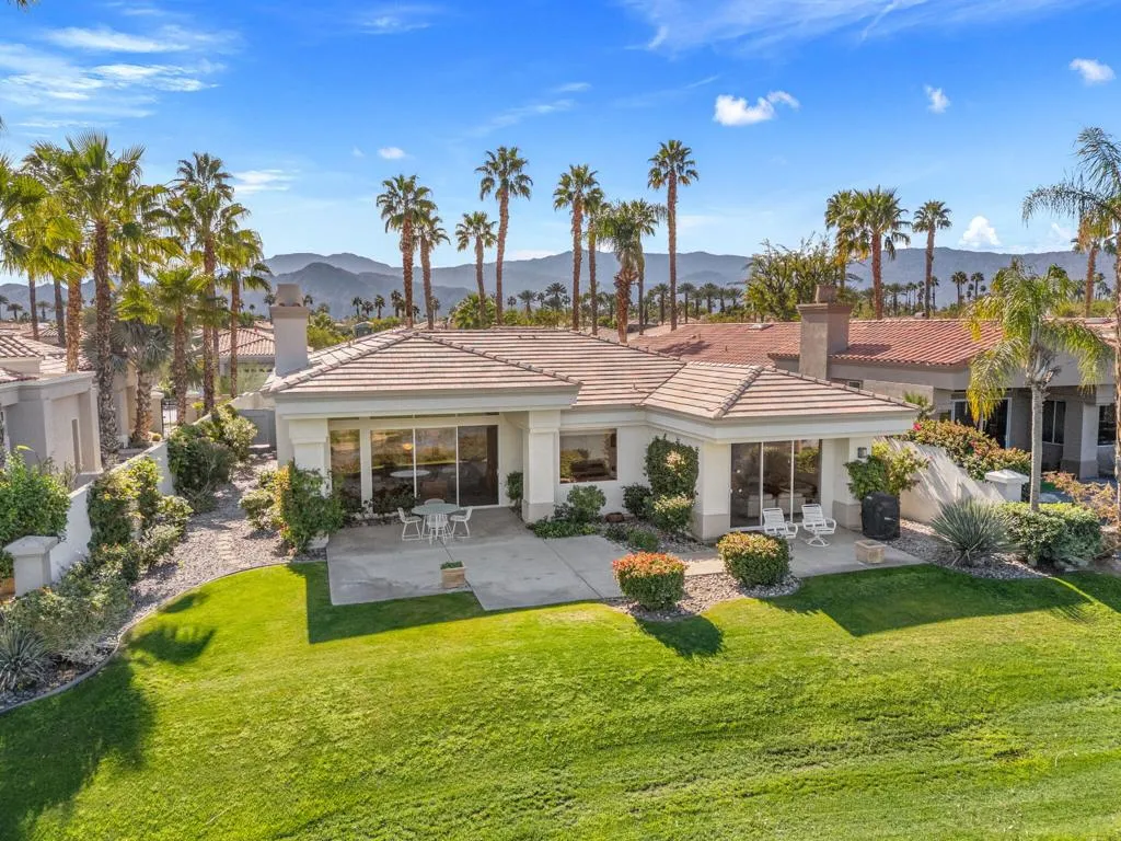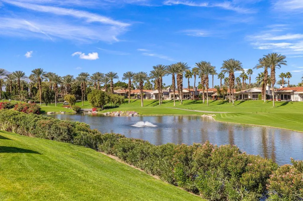 This impressive Palo Verde 5 floor plan offers approximately 3,310 square feet of well-designed living space with 4 bedrooms, 4.5 bathrooms, including a private casita, ideal for guests or a home office. Paved walkways lead through the front courtyard, creating an inviting arrival experience. Set on an elevated lot overlooking the lake and the 13th hole of the Grove Course, the home captures stunning panoramic mountain views and serene water vistas. The interior features a spacious living room and a separate family room, providing flexibility for both entertaining and everyday living. The generous primary suite offers a peaceful retreat with two walk-in closets and a well-appointed bath. Each guest bedroom includes its own en-suite bathroom, ensuring comfort and privacy for all. This thoughtfully designed home blends space, views, and classic desert elegance in a premier golf course setting. Home is being sold furnished per inventory list. Club Membership available immediately and Golf Membership available per wait list.