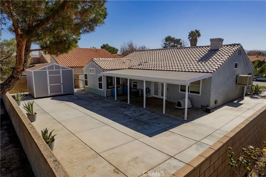 Welcome to this charming single-story home offering 4 bedrooms, 2 bathrooms, and 1,517 square feet of comfortable living space. Designed with an open floor plan, the interior features vaulted ceilings that create a bright, airy feel and a kitchen equipped with granite countertops that flows seamlessly into the main living areas—ideal for everyday living and entertaining. Laundry is conveniently located in the hallway for easy access. The home is equipped with solar panels, providing energy efficiency and potential savings. The garage also features newly installed epoxy flooring throughout. Step outside to a covered patio perfect for gatherings, along with a low-maintenance backyard featuring newly poured cement and a brand-new shed that stays with the property. Possible RV access adds extra flexibility, and with no HOA, you’ll enjoy added freedom. Ideally located close to shopping, schools, and with easy freeway access, this home offers both convenience and comfort.