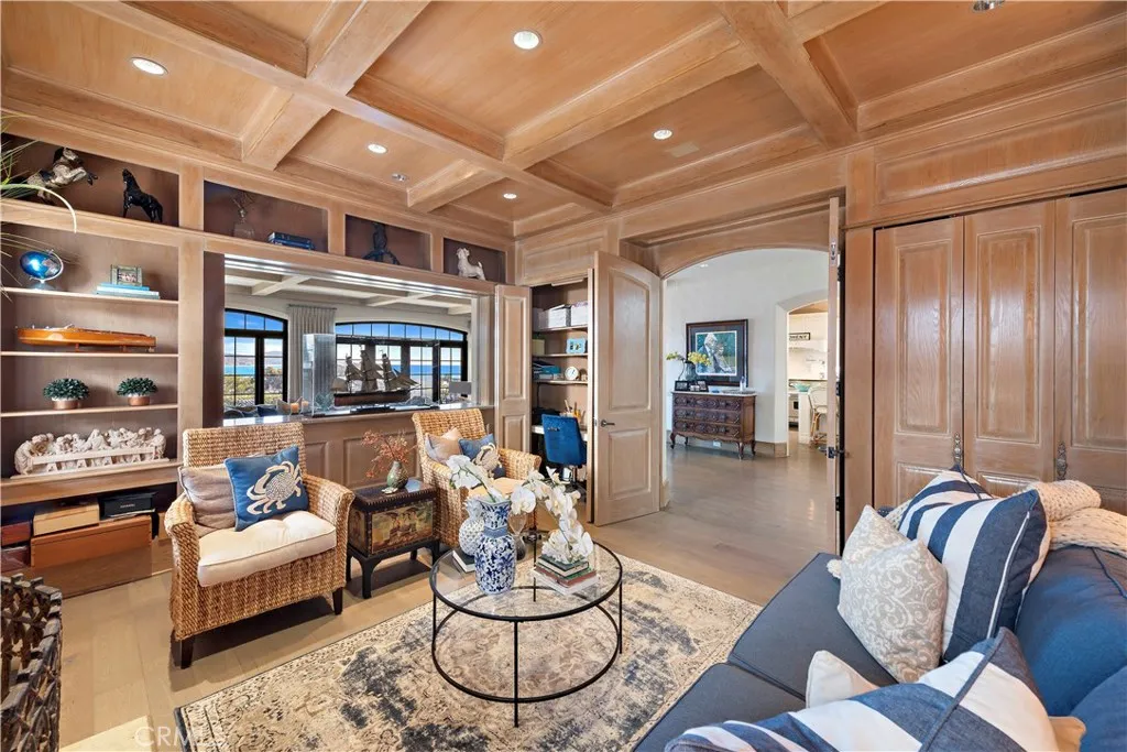 Available fully furnished May-September 2026, this stunning ocean-view home is nestled on a peaceful cul-de-sac in the prestigious community of Lantern Bay Estates. Located less than a 10-minute walk from Dana Point Harbor, Doheny Beach, and the Lantern District/City Center, this elegant residence offers the ultimate coastal lifestyle. Boasting 3 bedrooms, 5 bathrooms, and over 5,300 square feet of interior living space, the home features an inviting layout. The main level begins with a grand formal entry leading to a gourmet kitchen equipped with white cabinetry, expansive counter space, a large island, a double commercial Viking gas range, a Sub-Zero refrigerator, and a wine refrigerator. Adjacent to the kitchen, the spacious dining room seats ten and flows into the family room, which features a dramatic fireplace and opens to the backyard. This outdoor space offers multiple gathering areas with breathtaking views of Dana Point Harbor and the Pacific Ocean. A cozy library/den with its own fireplace is also located on this level. The lower level of the home is perfect for entertaining, featuring a large wine cellar and tasting room complete with a wet bar. Additionally, a home gym/workout room can be found on this floor. On the top level, you’ll find three generously sized bedrooms, each with ensuite bathrooms. The luxurious master suite boasts a private balcony with stunning ocean and harbor views. Its lavish dual bathrooms include one with a soaking tub and walk-in shower, the other with a walk-in shower, and dual walk-in closets. Maid service is included—please inquire for additional details. Experience the perfect blend of luxury, comfort, and convenience in this exceptional home.