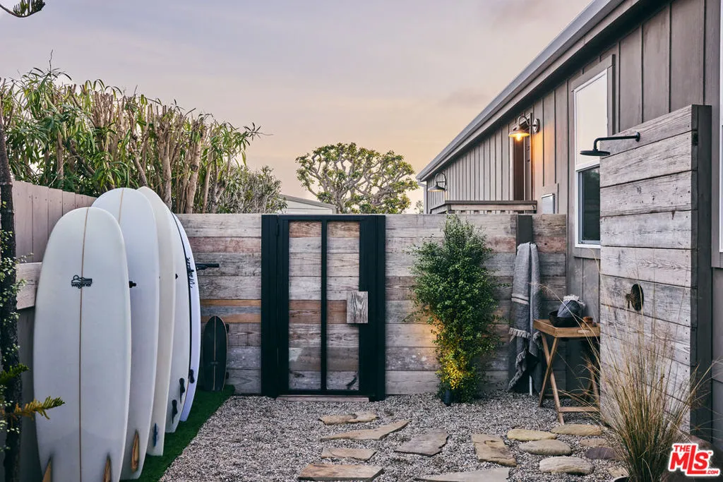 No. 71 is a thoughtfully designed, modern interpretation of Malibu living, defined by light, flow, space, and materials that favor organic simplicity over excess.Designed for California coastal living, the floor plan feels expansive yet intimate, offering a practical approach to seamless indooroutdoor daily living by the sea. Facing west on a northsouth axis, the home receives abundant natural light throughout the day. A vaulted interior ceiling draws light into expansive windows that frame partial ocean and mountain views.The landscaping is both purposeful and productive, with olive, New Zealand guava, lemon, sage, rosemary, lavender, and passion fruit.Modesty, simplicity, organic textures, and light informed the material choices. Repurposed Southern pine scaffolding planksused for flooring, decking, fencing, and gatesform the structural and visual backbone of the home. Complementing the warmth of the wood is eco-friendly Portola Limewash on both interior and exterior surfaces, chosen for its texture, its interaction with light, and its ability to develop character over time.The interiors are warm, with soft muted tones that form a cohesive counterpart to the exterior decking and yard spaces.The exterior spaces were designed by award-winning ecological landscape designer Jessica Viola. The private, gated main and side yards function as true extensions of the home, creating flexible private and social spaces that include a cedar soak tub, fire pit, heated outdoor shower, surfboard rack, dining area, and decking. There is ample space to add a sauna, storage, or garden beds.No. 71 is nestled within the guard-gated Point Dume Club community, just a short stroll from Zuma and Westward Beaches, and conveniently close to top local schools and everyday amenities. Residents enjoy exceptional amenities including tennis and basketball courts, a gym, clubhouse, year-round heated pool, locker rooms with saunas, a playground, and a dog run. Set on a coastal headland known for its beaches, surf breaks, and mountain trails, Point Dume is a sought-after neighborhood defined by open space, panoramic Pacific views, and an effortless connection to nature. The Point Dume Headlands Preserve overlooks Big Dume Beach, a protected marine conservation area rich with wildlife, while nearby trails and coves offer a balance of recreation and quiet. Malibu Elementary, Malibu Middle, the newly rebuilt Malibu High School, and the Point Dume Shopping Center are all conveniently close, easily accessed by foot, bike, or golf cart.