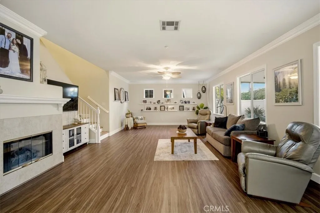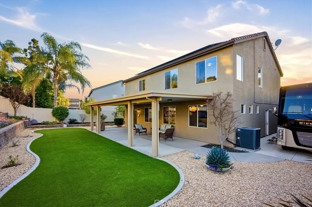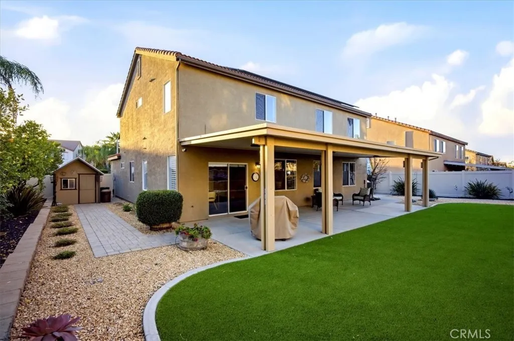Opportunity awaits the buyer seeking a truly magnificent property and entertainers paradise all wrapped into one! The open and very spacious floor plan offers 5 bedrooms and 3 full baths for the growing family. Your lower level features a stunning chef’s kitchen w/ beautiful granite counters, stone tile backsplash, and huge raised breakfast/entertainment bar. In addition, you’ll find an oversize guest quarters with a full bath around the corner giving it that “en-suite” feel. The massive family room w/ fireplace offers more than enough space for gatherings and the spacious dining area is perfect for family dinners. The family and dining areas are filled w/ plenty of natural light from the over size windows. The 2nd floor offers a huge master suite w/ a generous master bath that includes dual vanities, soaking tub, and shower. The dual walk-in closets are a plus! The upper level also has 3 additional over size bedrooms and a full bath. Your beautiful outdoor entertainment area features an awesome aluma-wood patio cover with overhead and accent lighting. In addition, you’ll find a large artificial turf area, terraced block retaining walls, a lovely storage shed, and landscape lighting throughout.