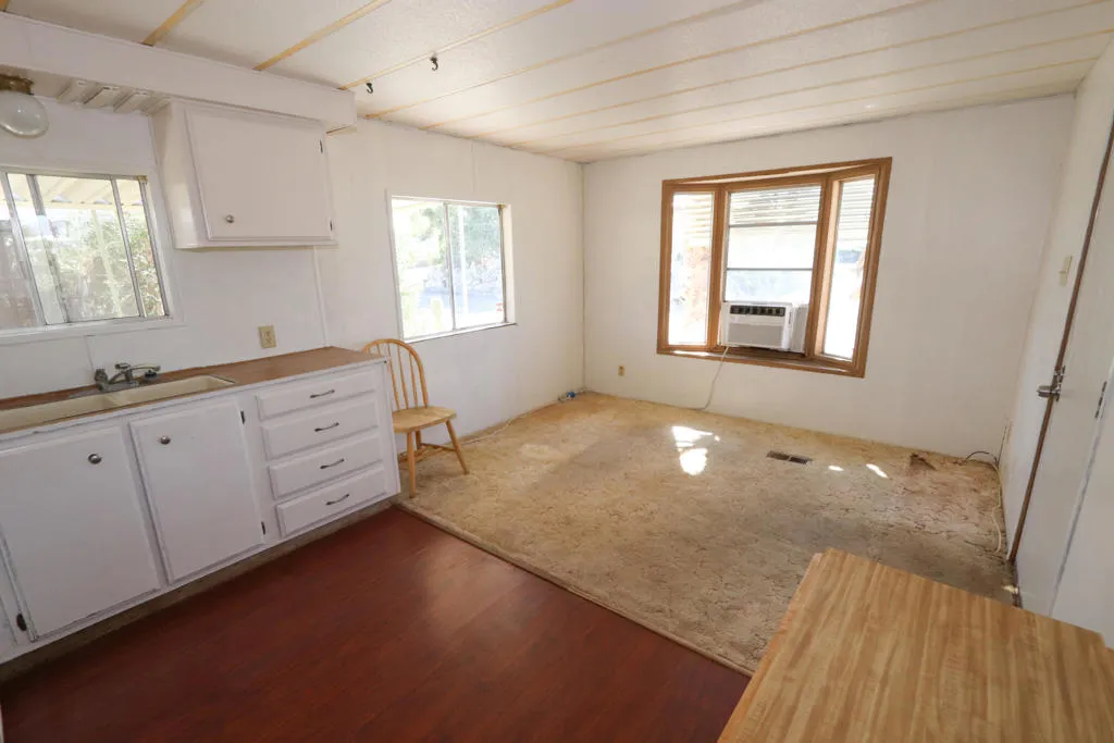 Seller motivated, all reasonable offers will be considered. Built in 1983, this is a great opportunity for a handyman / contractor / investor special. Great project for the right person. 2 bedrooms / 1 bath senior community gated with natural hot mineral springs spa and pool, onsite management. Large yard spacious back yard mature trees, shed. Space rent is $580 monthly includes water, trash service, sewer connection.