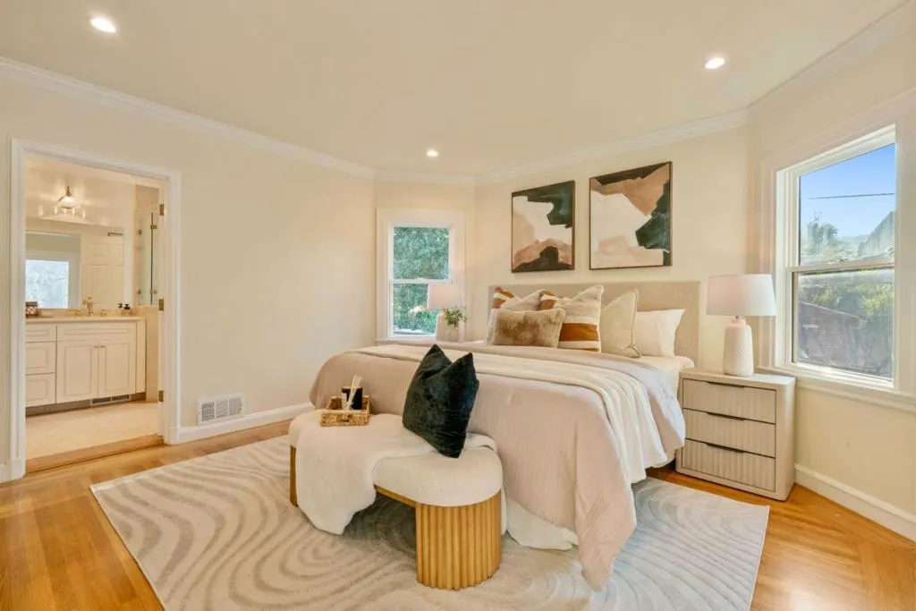 Located on a prime, tree-lined street in the highly desirable Millbrae Highlands area, this recently updated, turnkey home offers a perfect blend of classic architectural charm & modern upgrades. Upon entry, you are welcomed by grand, soaring ceilings & elegant archways. The formal living room features a vaulted ceiling & a cozy f/p. Newly updated kitchen boasts brand-new appliances, new countertops, ample cabinetry, & a charming breakfast nook that opens to a delightful outdoor deck. The sun-filled formal dining room opens directly to a spacious deck, making it ideal for entertaining. The main level offers two spacious beds and 1.5 baths, with hardwood flooring thru-out. The primary en suite features a luxurious oversized bathroom with abundant storage & a built-in makeup vanity. The lower level includes two additional bdrms, a full bath, perfect for multigenerational living or guests. A large family room with sliding doors that lead to a private, tranquil backyard that includes a gazebo. Enjoy a superb location with most conveniences nearbyjust steps from Central Park and the new rec center, walking distance to dtwn Millbrae, award-winning schools, and the Spur Trail. Mins to BART, Caltrain, SFO, 101 & 280, this home truly showcases the BEST that Millbrae has to offer.