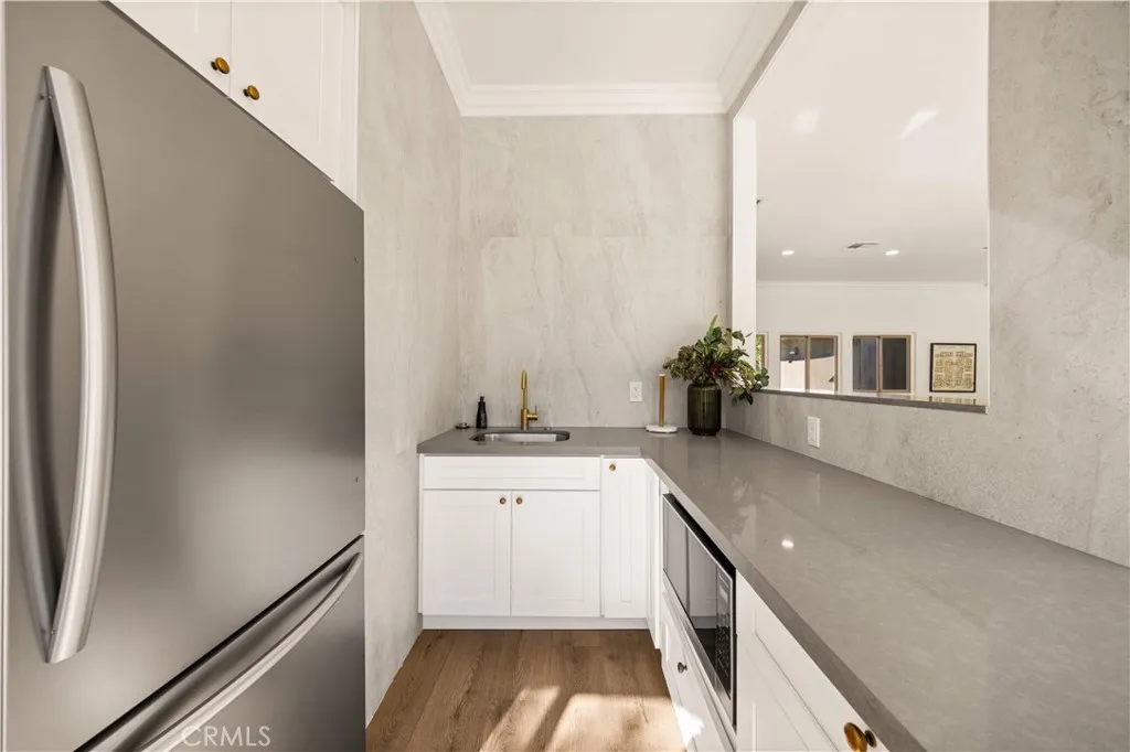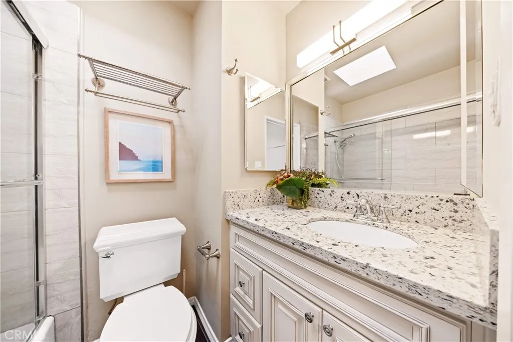 In the heart of Arcadia, the long favored by established residents for its balance of convenience, education, and lifestyle, this residence offers a rare blend of architectural comfort and everyday sophistication. The city is known for its top-tier school district, abundant Asian markets, diverse dining scene, and seamless access to major corridors, creating a setting where quality of life and practicality intersect naturally. The home itself spans approximately 1,842 square feet and is thoughtfully designed with three private suites plus a guest powder room, ideal for modern living and long-term flexibility. Upon entry, the living area immediately impresses with soaring ceilings and an abundance of natural light, creating a sense of openness and calm. A full renovation completed in 2017 elevated the interior with new hardwood flooring, dual-pane windows and sliding doors, a redesigned kitchen, and updated bathrooms, newer HVAC system, delivering both aesthetic refinement and functional efficiency. What distinguishes this residence is its exceptional flow and connection to outdoor space. The layout is bright, airy, and intuitive, with multiple skylights placed throughout the home, allowing sunlight to filter in from every angle and creating a tranquil, healing atmosphere. The front courtyard and two of the suites extend directly to balconies and exterior areas, seamlessly blending indoor and outdoor living. From the private rooftop, one can enjoy elevated views of the surrounding community and distant mountain lines—an inviting retreat for morning coffee, sunset reflections, or quiet evenings under the sky. Each suite is well-proportioned, offering privacy, comfort, and versatility for family members, guests, or home office needs. The home’s transparency, ceiling height, and intelligent configuration enhance both daily living and long-term value. Set within a peaceful corner of the community, the property benefits from exceptional privacy and lush landscaping, surrounded by mature trees and greenery. Residents enjoy access to a resort-style pool and clubhouse, further enhancing the lifestyle experience. The environment is calm, refined, and beautifully maintained—an ideal complement to the elegance of the home itself. This is not simply a place to live, but a thoughtfully curated setting where light, space, and location come together in one of Arcadia’s most enduringly desirable environments.
