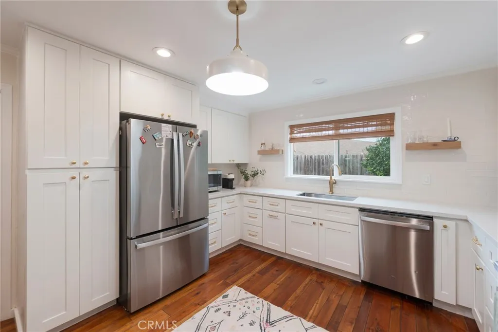 Charming Single Story Home w/ ADU! This well cared for home is nestled on a quiet Cul de Sac and sits proudly on an Oversized Pie Shaped Lot. Step inside this beautifully remodeled residence and be greeted with hardwood flooring throughout, creating a warm and inviting atmosphere. Enjoy cooking in the Chef’s Kitchen complete with quartz counter tops, subway tile, and stainless steel appliances. The Dining Area is open to the kitchen and living room creating a great space to entertain. In the Living Room the custom cabinetry and book shelves frame the fireplace, making for a great focal point. The sliding glass door leads to an expansive and private backyard retreat, complete with an ADU just off the large covered patio serving as an Office Space, Play Room or Creative Studio. Mature and lush landscaping provide an ideal setting for relaxing or entertaining with friends and family. Unwind in the spacious Primary Suite, featuring dual closets, and large upgraded bathroom w/ marble floors and shower. There is direct access to the garage, and a separate laundry room w/ mud room space, for convenience. The Air Conditioning is an added bonus, and the true Pride of Ownership is evident through out the home. The neighborhood offers close proximity to the Beach, Shopping, Dining, Parks, Top-Rated Lakeview Elementary, and Easy Freeway Access. Come enjoy the Surf City Lifestyle, and all that HB has to offer!