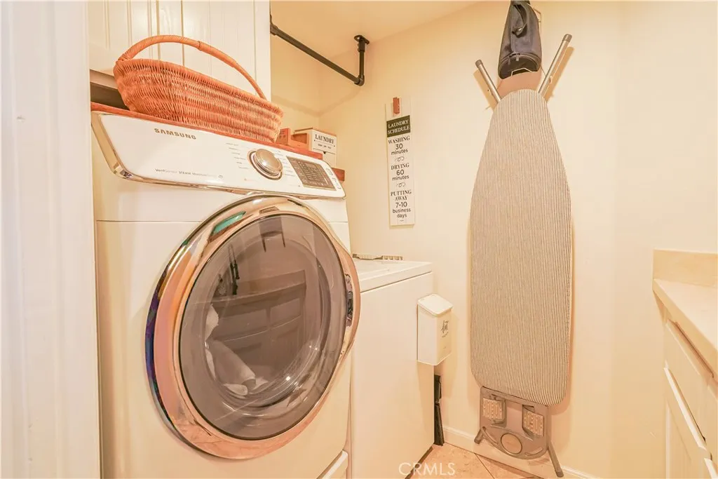 Bathrooms are thoughtfully upgraded with chair-height, elongated toilets and bidets, offering both comfort and modern convenience. The indoor laundry room is located downstairs near the garage entry and includes custom cabinetry above the washer and dryer, along with built-in shelving for excellent storage.