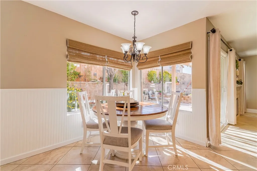 The open-concept kitchen is designed for both style and function, featuring granite and quartz countertops, under-cabinet lighting, a breakfast nook, and quality cabinetry. The adjoining dining area includes a decorative candelabra-style light fixture, and a evaporative cooler located near the dining area helps efficiently cool on those hot days, when you don’t want to run your A/C.
