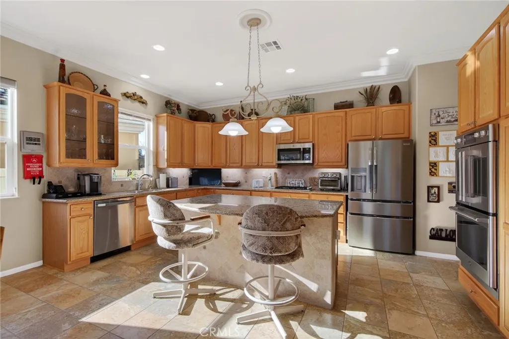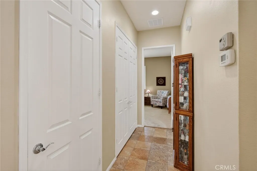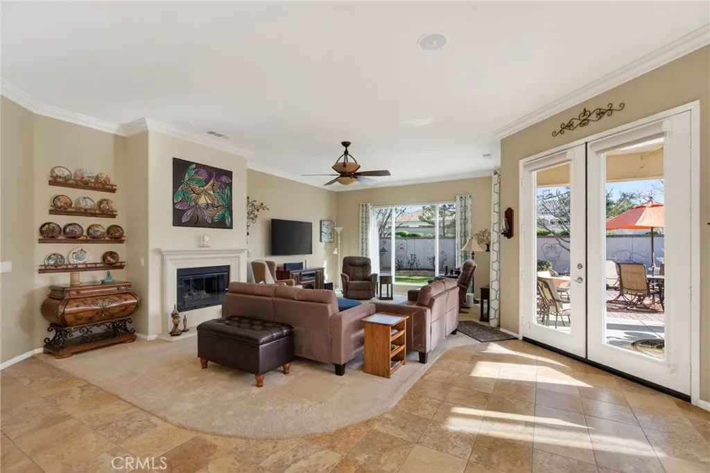 Stunning “Emerald Model” home Located in the highly Coveted retirement community of Solera. The upgrades and immaculate condition will satisfy the most particular individuals. The tile floors start at the entryway and continue through the kitchen, hallways, Bathrooms and Laundry room. The oversized Livingroom has a beautiful and welcoming fireplace and the room is filled with an abundance of natural light. The kitchen and dining room are open to the Livingroom providing the open floorplan concept that is perfect for those large and small get togethers. The kitchen has a large center island, Granite counter tops, upgraded stainless steel appliances and an abundance of cabinets that include some pull-out shelves. The French doors lead out to the structural covered patio that includes a ceiling fan providing an inviting outdoor space complete with Gas firepit to enjoy during cool evenings in this private back yard. There are no rear neighbors, lush landscaping, extended cemented side yard that make this home’s location a premium in the community. The owner’s suite is located in the rear of the home and is complete with a separate shower, soaking tub, dual sink vanity and oversized walk-in closet. The 2nd bedroom has its own private full bathroom. The office is conveniently located near the 1/2 bathroom. The laundry room has a sink, additional storage cabinets and large closet. The garage provides direct access to the home, and the 3rd stall is the perfect spot for your Golf cart. The home has beautiful shutters and window coverings, neutral paint colors and is spotless. This community and its amenities provide that active lifestyle you have been looking for. Guard gated, pool, clubhouse, billiards room, Tennis, library and so much more. Upgrades include an updated HVAC system. Conveniently located within a short drive to Palm Springs, Oak Glen, Redlands and beyond.