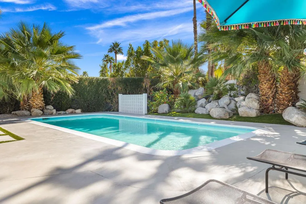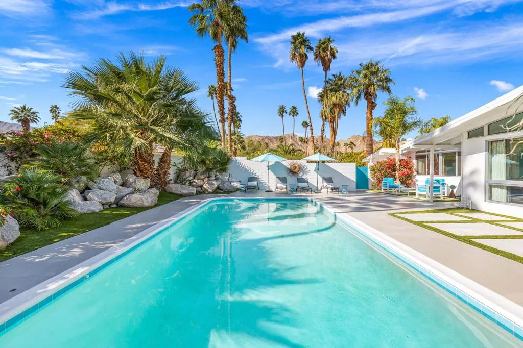 🌞A True ‘Mid-Century”Jewel in Magnesia Falls Cove!!!💠This stylish 1956 Mid-Century home offers three bedrooms plus a flexible office/den or optional fourth bedroom. The open floor plan seamlessly connects the living room, kitchen, and dining area, thoughtfully designed to showcase the home’s iconic architecture.🌴WALLS OF GLASS blur the line between indoors and out, flooding the interior with natural light and framing breathtaking poolside, mountain, and desert views. Enjoy sweeping mountain vistas from nearly every angle, both inside and outside.Outdoor lounging spaces are ideal for relaxing, entertaining, or simply soaking in the beauty of the cove. This is a rare opportunity to own an architecturally significant Mid-Century retreat in one of the area’s most desirable neighborhoods.Additional features include OWNED SOLAR. Many homes of this era and style in the neighborhood are believed to have had involvement from television host Art Linkletter, adding to the historic allure of this exceptional property.