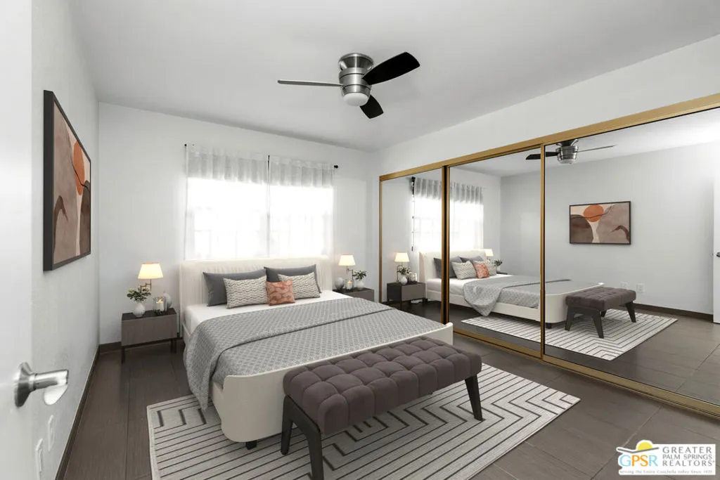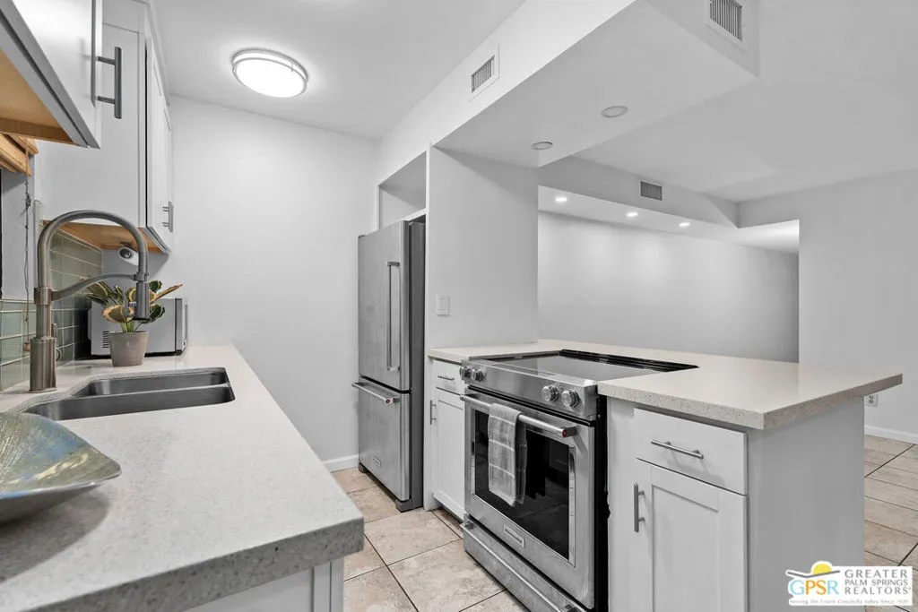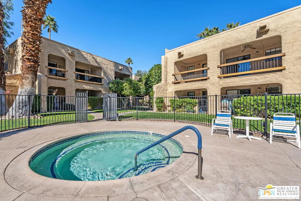 Ground-floor condo in the Palm Springs Golf & Tennis Club offering strong rental and lifestyle appeal in South Palm Springs. This 1 bedroom + bonus area, 2 bath unit features approx. 705 sq ft, no stairs, and convenient patio laundry. Pool-view location just steps from the pool, spas, and tennis courtsan ideal setup for seasonal renters and full-time use alike. Recent updates include fresh interior paint, new window coverings, and a refreshed kitchen with quartz countertops and newer KitchenAid appliances. The flexible bonus area includes a Murphy bed and works perfectly as a guest room, TV lounge, or remote work space, adding valuable sleeping and rental versatility. Community amenities include 3 pools, 4 spas, and 4 tennis courts, with approx. 205 units total. HOA dues of $529/month commonly include water, sewer, trash, cable TV, internet, and exterior maintenancekeeping ownership costs predictable. Located adjacent to the public Tahquitz Creek Golf Resort with two 18-hole courses. Ideal for seasonal rental, long-term hold, or personal desert getaway.